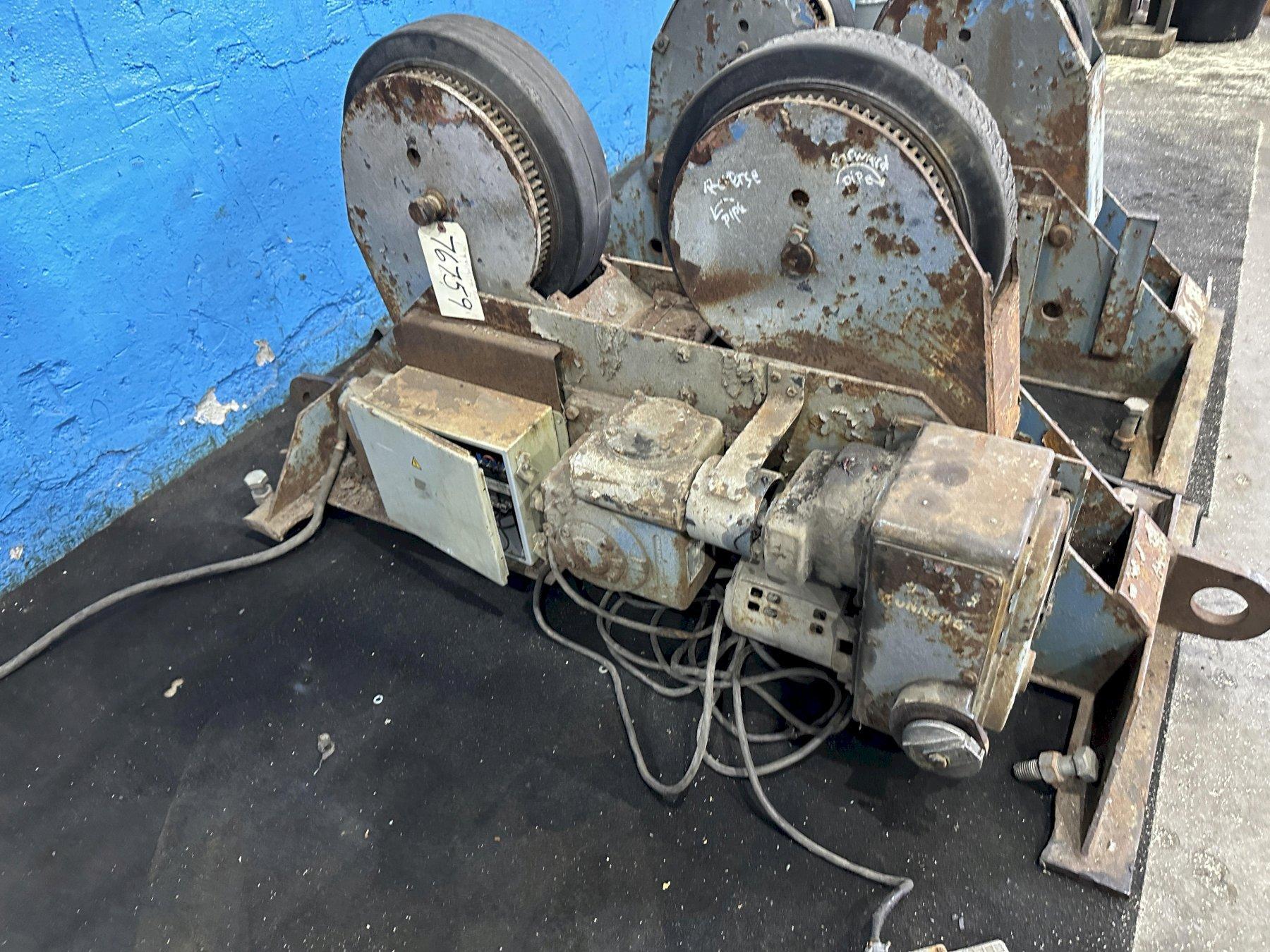 SERIAL .......................... 12354 DRIVE MODEL ..................... M15T TURNING CAPACITY ................ 15 TON WEIGHT CAPACITY OF DRIVE ROLL ... 5 TON WEIGHT CAPACITY OF IDLER ROLL ... 5 TON EACH DIAMETER OF ROLLS ............... 16" WIDTH OF ROLLS .................. 4" RUBBER COATED WHEELS ............ YES DISTANCE BETWEEN WHEELS ......... 17-1/2" MIN, 44" MAX TANK DIAMETER ................... 4" TO 144" VARIABLE SPEED MECHANICAL ....... 6.3 TO 63 IPM FORWARD AND REVERSING ........... YES FAST FORWARD .................... YES DRIVE MOTOR ..................... 3/4 HORSEPOWER |