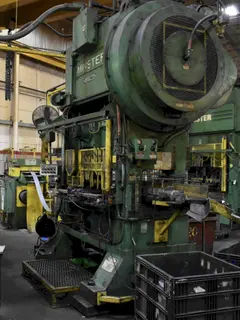 Minster High Speed Straight Side Press Model: P2-150 "Piece-Maker" Year: 1992 150 Ton Capacity 6" Stroke 4" Adjustment (Motorized) 23" Shut Height (SDAU on Bed) 60" LR x 40" FB Bolster 60"LR x 23" FB Ram Size 0-120 SPM Variable 17" W x 14" H Windows Equipped With Minster Press Control Console Motorized Ram Adjustment 6" T-Slotted Bolster Isolator Pads Available Immediately with or without Current Feed Line, quoted separately! Available for Inspection By Appointment Estimated Weight 57,000 lbs Click on Video Link in Quote Specifications Subject To Verification; Subject To Prior Sale & Price Change! |