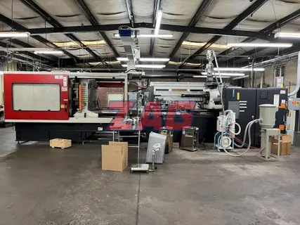 Screw Diameter: 3.94 in Screw L/D 20:1 Max daylight: 81.7 in Min / Max mold thickness: 11.8 in / 43.3 in Platen size: 55.1" x 55.1" Dims 371 x 104 x 132 IN Lx W X H Approx weight 75,000 lb Options: Core Pull, 2 circtuits Auto Lube Ejector Bushings Low Base 66" Center Line |
