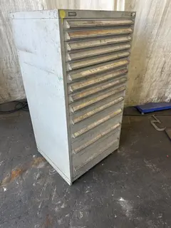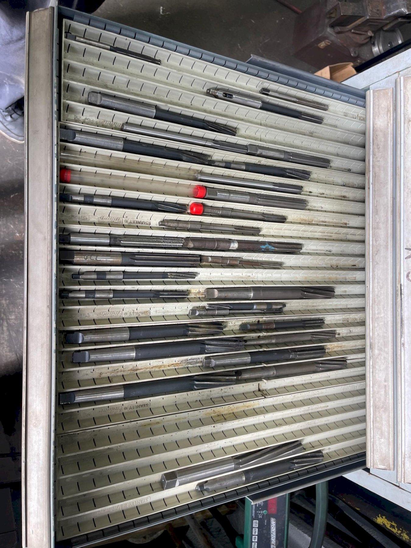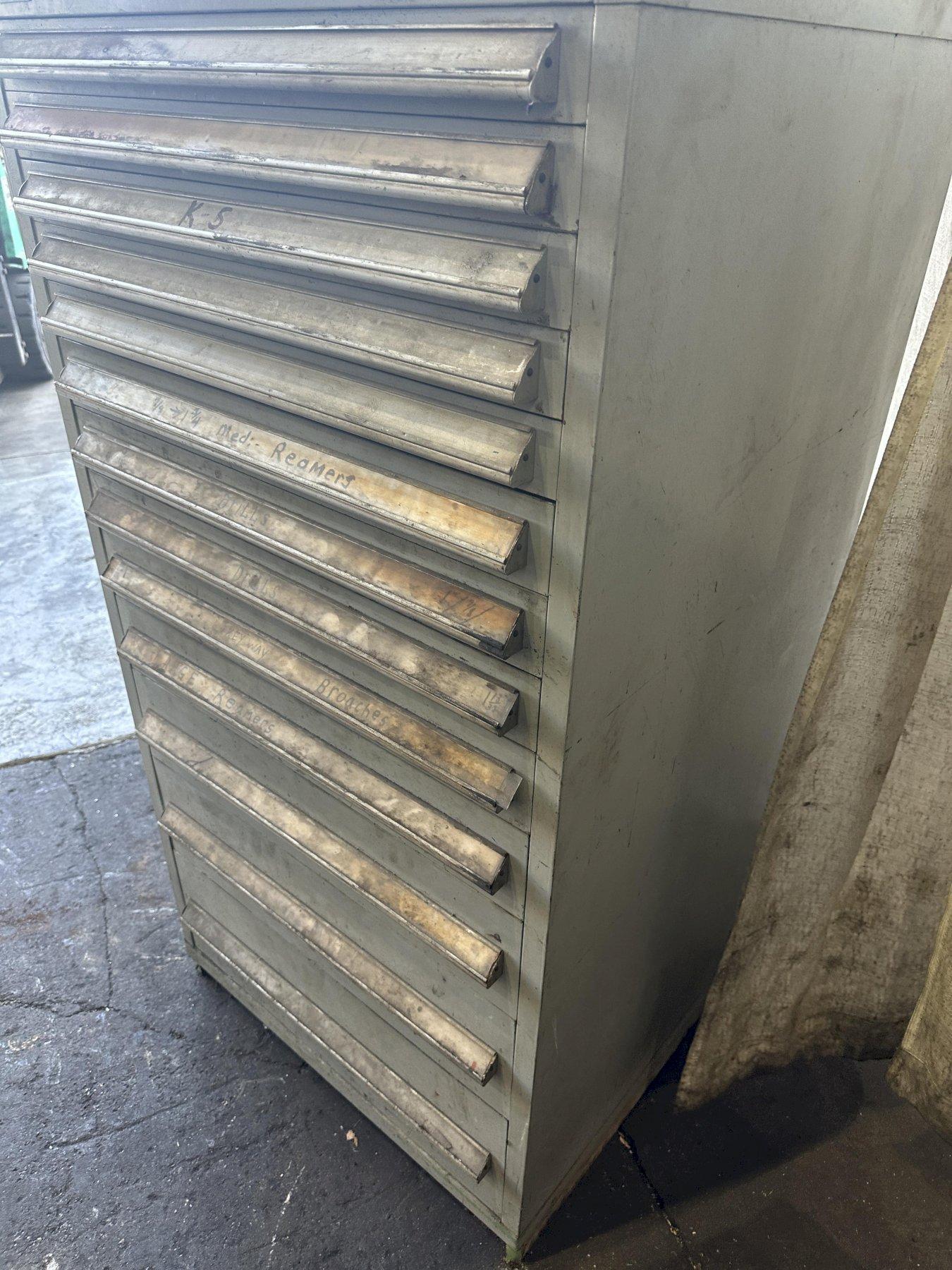 OVERALL DIMENSION ........................................... 28" X 30" X59" NUMBER OF DRAWERS ......................................... 13 DRAWER DRAWER 1 DEPTH ................................................. 1-1/2" DRAWER 2 DEPTH .................................................. 1-1/2" DRAWER 3 DEPTH ................................................... 1-1/2' DRAWER 4 DEPTH .................................................. 1-1/2" DRAWER 5 DEPTH .................................................. 1-1/2" DRAWER 6 DEPTH .................................................. 3" DRAWER 7 DEPTH ................................................... 3" DRAWER 8 DEPTH .................................................. 3" DRAWER 9 DEPTH .................................................. 4" DRAWER 10 DEPTH .................................................. 5" DRAWER 11 DEPTH .............................................. .. 6" DRAWER 12 DEPTH ................................................. 8" DRAWER 13 DEPTH ................................................. 10" **LOADS OF DRILL BITS AND OTHER TOOLING*** |