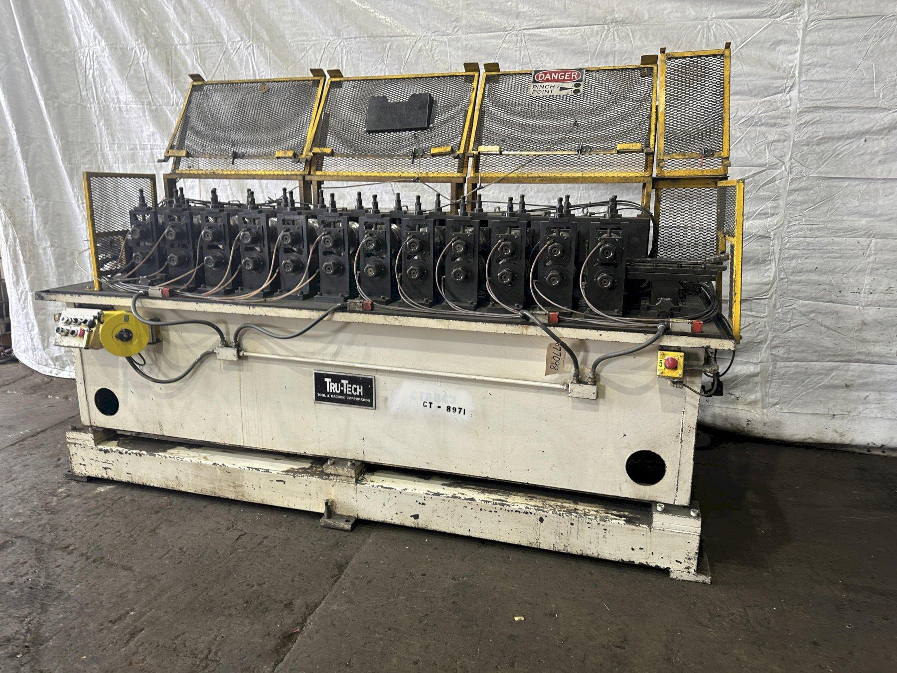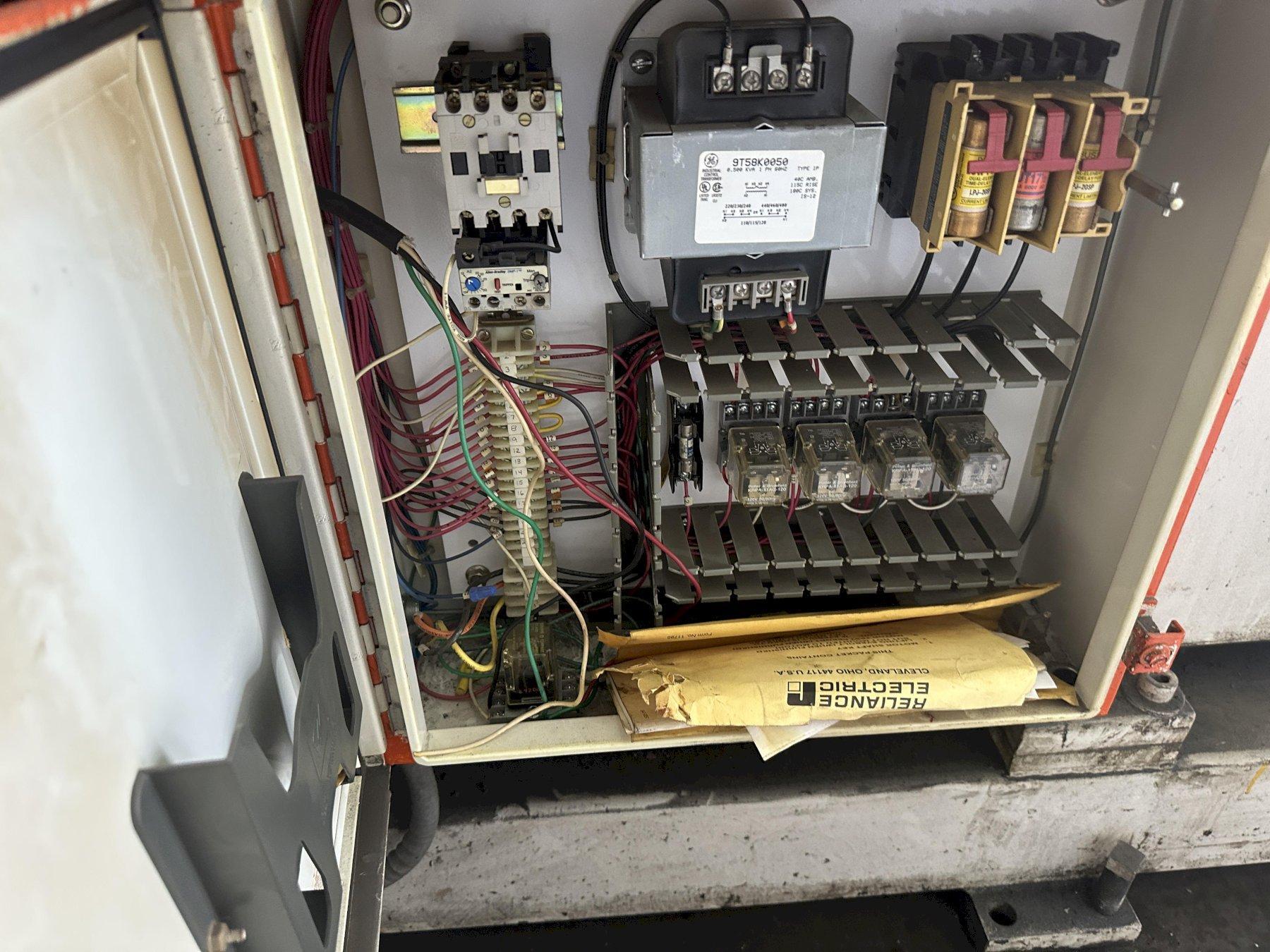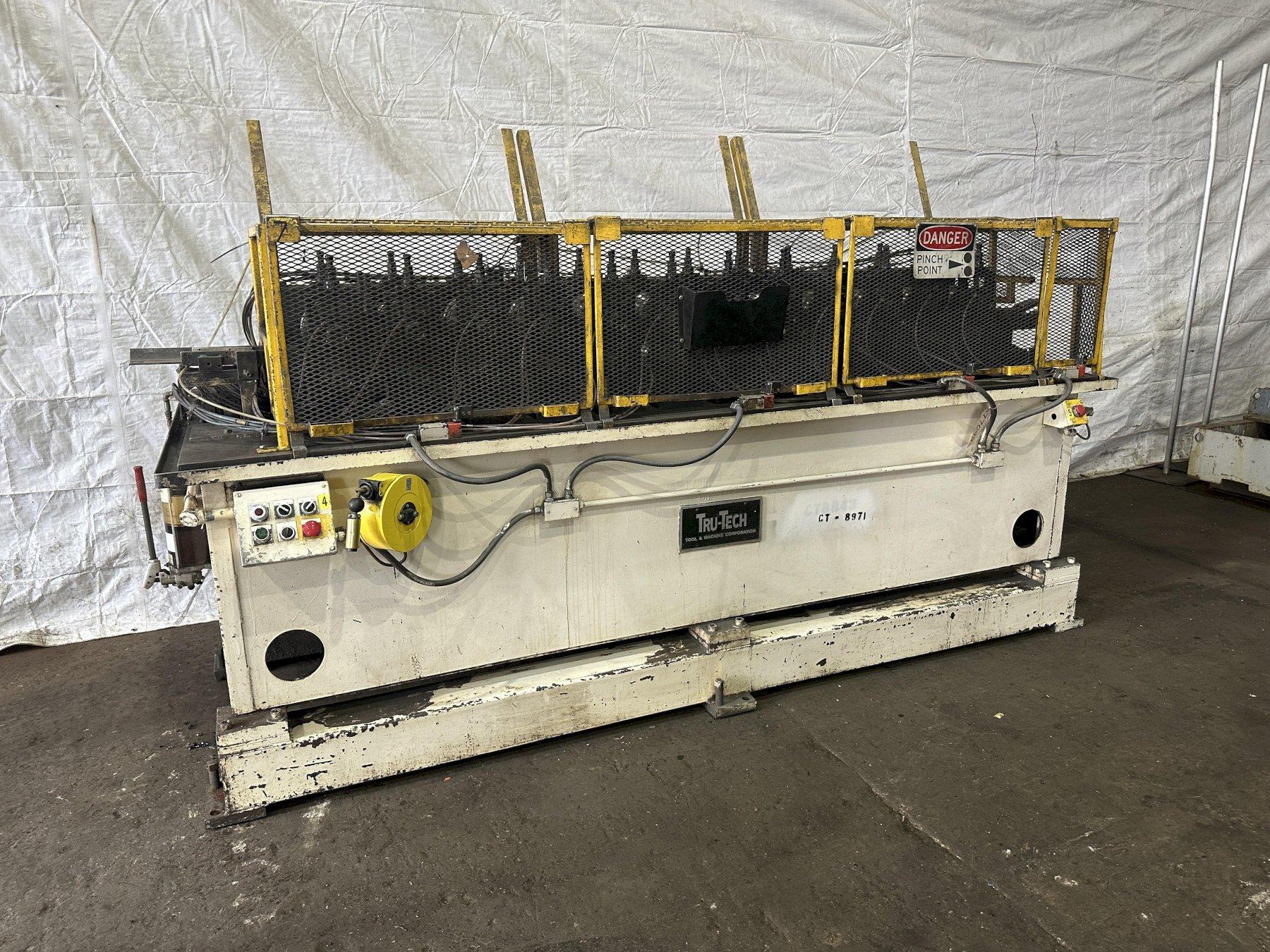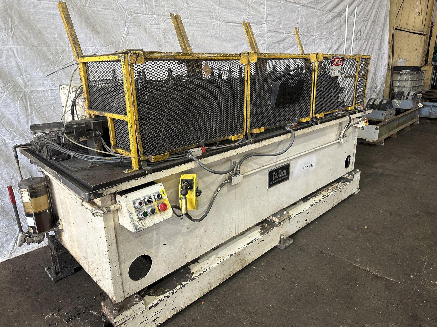 NUMBER OF STANDS .................... 12 DIAMETER OF SHAFTS .................. 2" ROLL SPACE .......................... 8" HORIZONTAL CENTERS .................. 8" BASE TO CENTER OF LOWER SHAFT ....... 6" VERTICAL ROLL ADJUSTMENT ............ 2" SPEED VARIABLE ALLEN BRADLEY ........ 1336 PLUS FORWARD AND REVERSING ............... YES LUBE SYSTEM ......................... YES JOGGING ............................. YES MOTOR ............................... 10 HORSEPOWER |