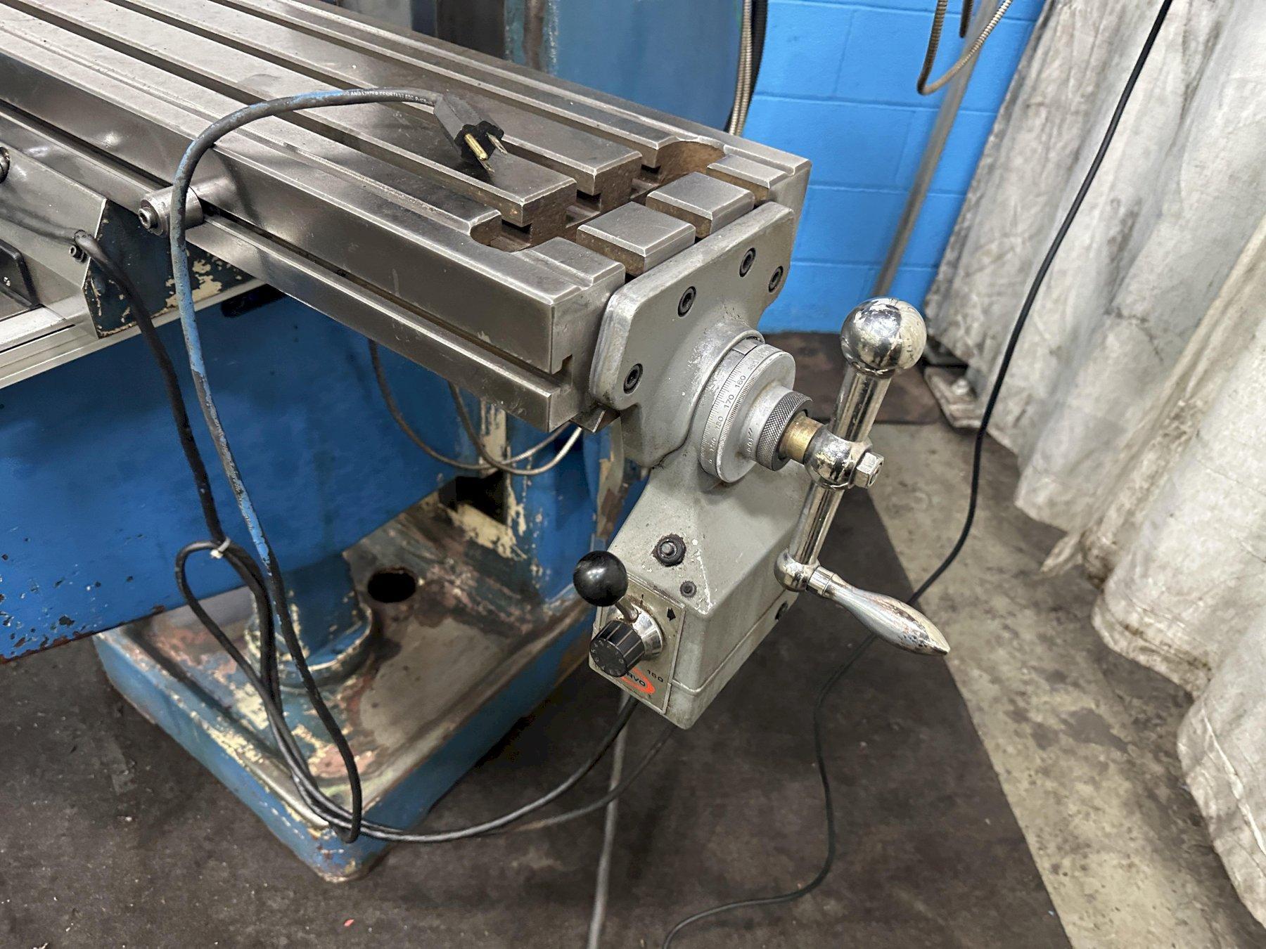 SERIAL .............................. KM834336 MODEL ................................ FM-3VK area of table ........................ 50" x 10" spindle speeds, variable ............. 60 to 4500 rpm longitudinal table travel ............ 30-3/4" longitudinal power feed .............. yes cross travel ......................... 15-3/4" cross power feed ..................... yes vertical knee travel ................. 15" quill travel ......................... 5" taper in spindle ..................... r8 head tilts, front/back ............... 45 degree either way head swivels, left/right ............. 90 degree either way chrome knee ways ..................... yes 2 axis digital readout ............... acu-rite digital speed display readout ........ yes motor ................................ 3 horsepower |