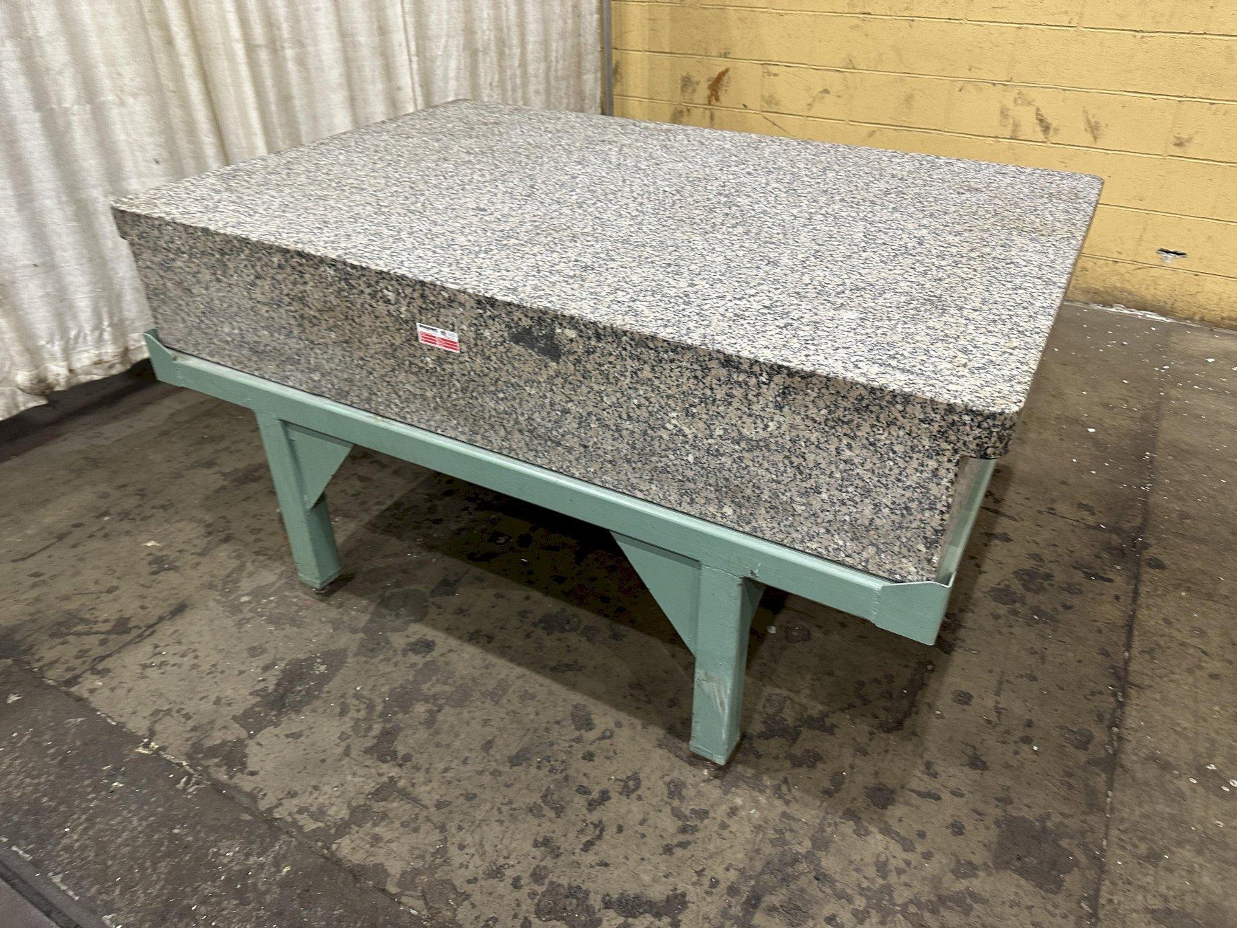 LENGTH OF PLATE ....... 72" WIDTH OF PLATE ........ 48" PLATE THICKNESS ....... 12" COLOR ................. GRAY BLACK FLOOR TO TABLE .......... 36" TALL SITS ON FOUR LEG STEEL STAND. |
