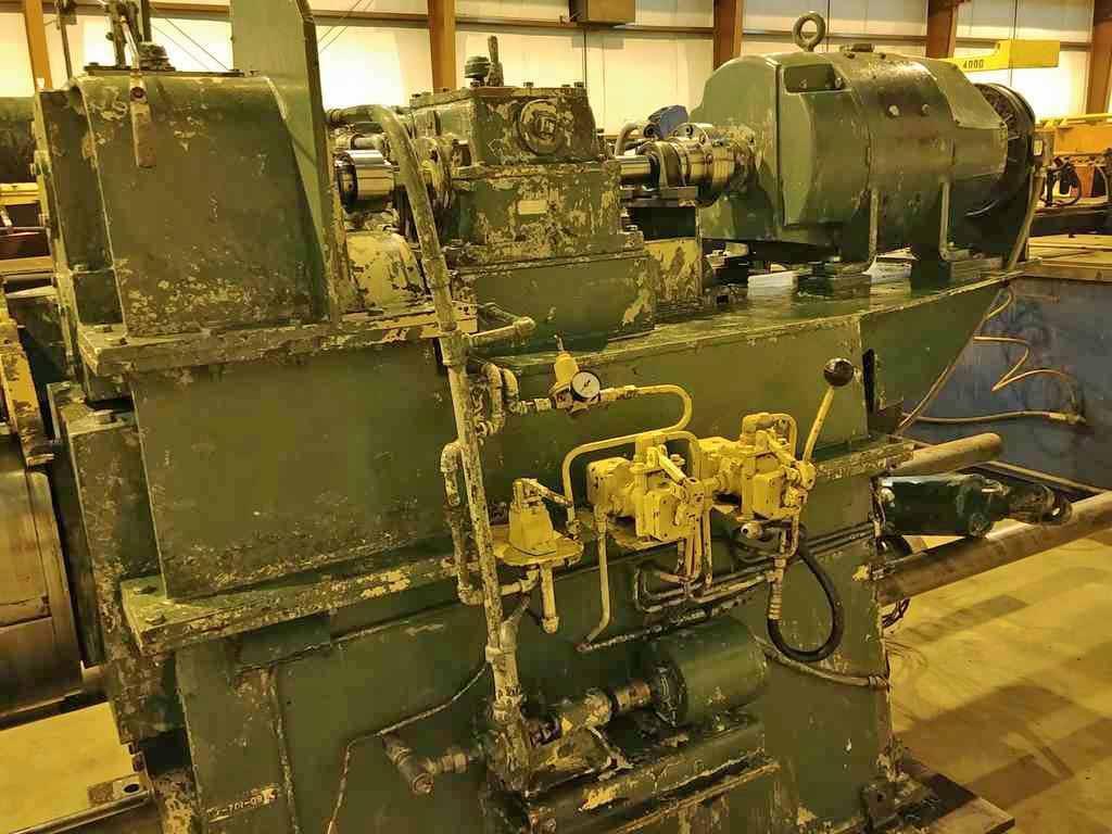 Stock # 14243 -Capacity: 40,000 lb. x 60" -20" Dia. x 64" Face Drum -Powered Clamp & Expansion -Gripper opens to 0.312" -10.5" Dia. Main Shaft -Hydraulic Pushoff -Overarm Separator -Passline: 34.5" from Floor to Center of Drum -50 HP DC Motor, 1750 RPM, 550V with Electric Holding Brake -Main Gearbox w/40:1 Ratio (Approx.) -Philadelphia 2 Speed Reducer with 1.25:1 and 2.41:1 Ratios -Line Speed: 95/180 FPM (Bare Drum Speed) 285/540 FPM @ 60" O.D. -AC Motor for Lube Pump -Line Direction: Right to Left -Overall Size: 193" L x 77" W x 88" High 25,000 lbs. **Temporary Specifications Subject to Revisions** **PRICE QUOTED AS IS WHERE IS SUBJECT TO PRIOR SALE** **ALL SPECIFICATIONS ARE SUBJECT TO BUYERS VERIFICATION** |