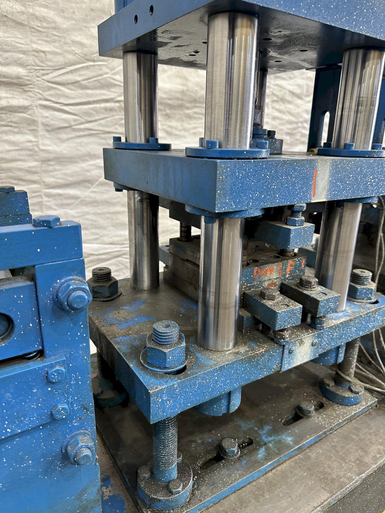 SERIAL ............................... 201705 MODEL ............................... DH100 YEAR NEW ........................ 2017 NUMBER OF STANDS .................... 10 DIAMETER OF SHAFTS .................. 2" ROLL SPACE .......................... 9" HORIZONTAL CENTERS .................. 7.5"" BASE TO CENTER OF LOWER SHAFT ....... 8" VERTICAL ROLL ADJUSTMENT ............ 1" SPEED VARIABLE ............................... MITSUBISHI FORWARD AND REVERSING ............... YES NUMBER OF 4 POST PRESS PUNCHES ... 2 NUMBER OF 4 POST CUTOFF PRESSES ... 1 ROLL STRAIGHTNER .................................. 6" LUBE SYSTEM ......................... YES TOOLING ON MACHINE .......................... ANGLE IRON MOTOR HORSEPOWER .................... 7.3 |