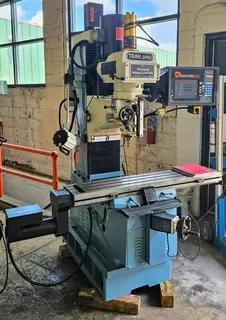 Specifications: Table Size.............................................49" x 9" X-Axis.................................................32 Y-Axis.................................................16 Z -Axis.................................................27 Quill Diameter.........................................3 3/8" Maximum Quill Travel...................................5" Spindle Taper..........................................R8 Spindle Speed Range RPM - Varispeed drive..............70-4200 Spindle Center to Column Face..........................18" Spindle Motor Power - vari-speed head..................3 HP Power requirements, control............................110V; 1P; 8A Power requirements, machine with vari-speed head.......220/440;3P; 8.5/4.25A Maximum Weight of Workpiece............................1320 lbs. Height of table from bottom of bed.....................33" Max spindle nose to table..............................27" Min height.............................................90" Max height.............................................98" Width of machine including table.......................70" Length with electric box door closed...................64" Overall width incl full table traverse.................104" Overall length with electrical door open...............72" Footprint of Machine...................................23 x 40" Weight net / shipping lbs..............................3200 / 3500 Rapid traverse X, Y, Z.................................150 IPM Drilling max capacity, Varispeed head..................1" dia Milling max capacity, Varispeed head...................2 inch3/min Tapping max capacity, Varispeed head...................0.75" Equipped with: Prototrak SMX Control Power Draw Bar Programmable Spindle |