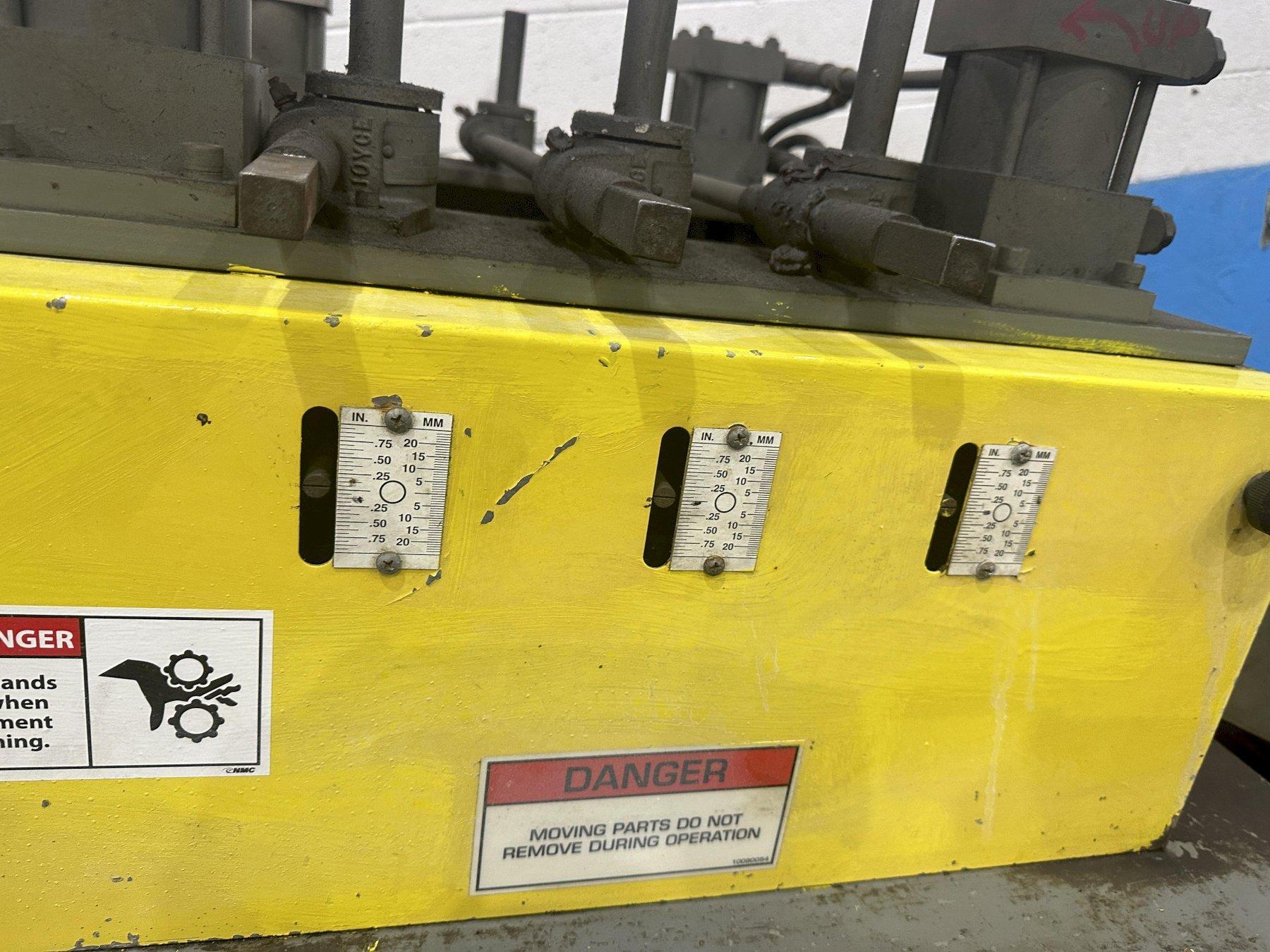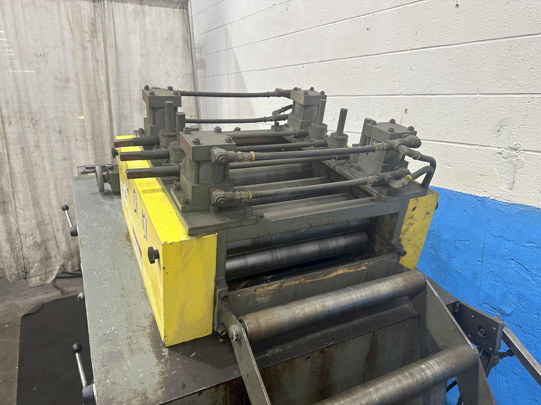 SERIAL ....................... 14691-1 MODEL ........................ CPPS-P0-300-18 WIDTH CAPACITY ............... 30" THICKNESS CAPACTIY ........... .030" TO .156" STRAIGHTENING ROLLS .......... 7 STRAIGHTENING ROLL DIAMETER .. 3" FEED SPEED ................................... VARIABLE ENTRY PINCH ROLLS ............ PNEUMATIC EXIT PINCH ROLLS ................. PNEUMATIC PINCH ROLL DIAMETER .......... 3" STANDARD SPEED ............... 0 TO 80 FPM DANCER ARM ....................... YES EDGE GUIDES .................. YES DRIVE MOTOR .................. 3 HP |