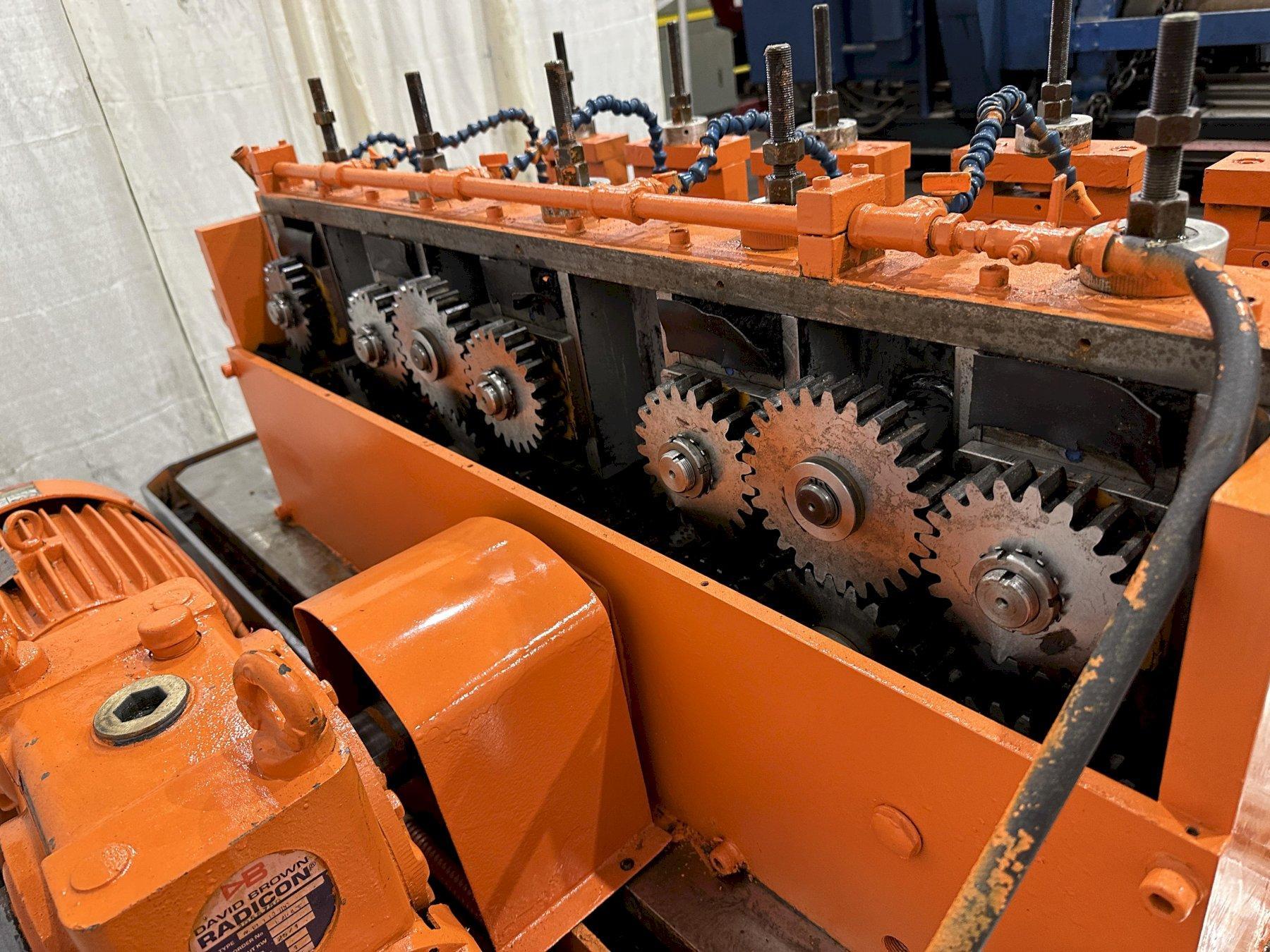SERIAL ..................... 12354 NUMBER OF STANDS ........... 5 ROLL SPACE ........................ 12" HORIZONTAL CENTERS ......... 9" SPINDLE DIAMETER ........... 1-1/2" KEYWAY ..................... 1/4" LOWER SHAFT TO BASE ..... 6-13/16" CONTROLS CONSOLE .................. YES MOTOR ...................... 10 HORSEPOWER |