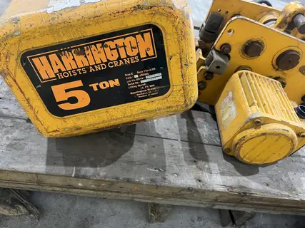 LOT .............. ER1A-64SY2165 CAPACITY ......... 10,000 LBS / 5 TON LIFTING SPEED .... 12 FT/MIN SIZE ............. E DUTY CLASS ....... H4 CODE ............. NER050L CHAIN BUCKET ..... YES PENDANT CONTROL .. 4 BUTTON MOTOR ............ 3.5 KW POWER TROLLEY .... YES SERIAL ........... 00019737 LOT .............. MR1A-66SY4579 CODE ............. MR050L TRAVEL SPEED ..... 40 FPM TROLLEY MOTOR .... .75 KW |