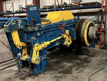 -Model: P9 -Upgrades: Replaced Air Clutch and Brake (2006) Rebuilt Ram Ways Added Ejector Safety Equipment -Nominal Power: 620 Metric Tons -Stroke Length: 440 mm (17.3") Max. -Aluminum (99.5): Max. Diameter: 75mm (2.95") Max. Wall Thickness: 0.3mm (0.118") Max. Extruded Length: 355mm (13.97") -Zinc (at 130 Degrees C): Max. Diameter: 65mm (2.56") Max. Wall Thickness: 0.5mm (0.197") Max. Extruded Length: 200mm (7.87") -Number of Strokes Per Minute: 50 -Drive Motor: 50 HP AC Motor, 1080 RPM, 220/440 V, 60 Hz. -Wichita ATD-321 Air Clutch -Wichita ATD-224 Air Brake -Slug Feeder Not included. -Overall Size: 4267mm L x 2692mm W x 2337mm High (172" L x 106" W x 92" High; 45,725 lbs.) |