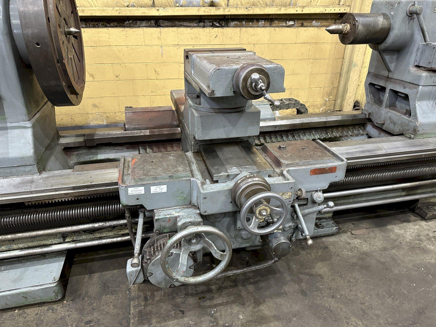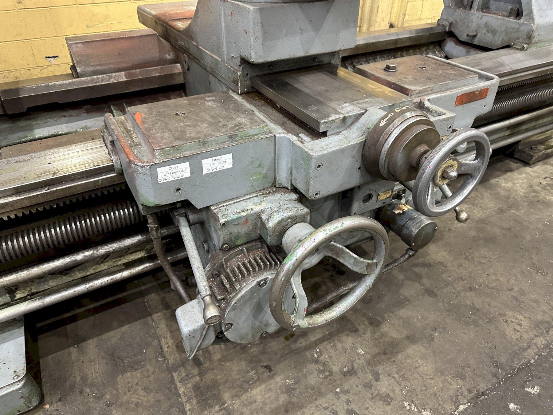 SERIAL ................................... 3NK911 MODEL .................................... 4024-42 YEAR ..................................... 1974 SWING OVER WAYS .......................... 54" SWING OVER CROSS SLIDE ................... 42" DISTANCE BETWEEN CENTERS ................. 84" SPINDLE SPEEDS ........................... 2.7 TO 300 RPM SPINDLE NOSE ........................... L3 FEEDS .................................... .004 TO .250 IPR THREADS .................................. 3/4" X TO 24 TPI DIAMETER OF SPINDLE HOLE ................. 3" 4-WAY RAPID TRAVERSE ..................... YES 36" FACE PLATE ...................................... 36" HARD WAYS ................................ YES MOTOR HORSEPOWER ................ 30 |