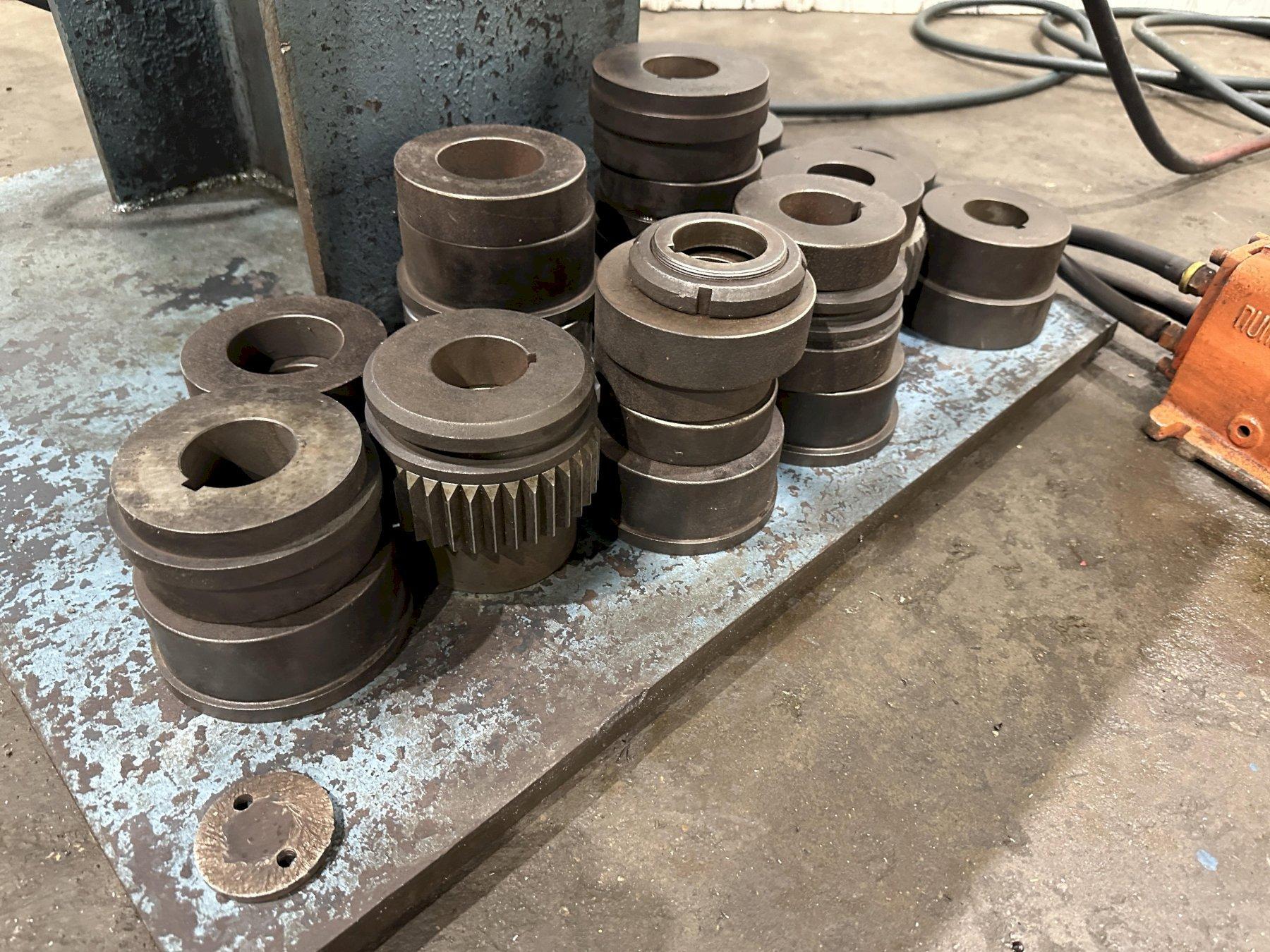 SERIAL .. 15201041 MODEL ..530-P CAPACITY ..12 GAUGE THROAT .. 20" DIAMETER OF ROLLS .. 4-1/4" VERTICAL CENTERS .. 4-1/4" FORMING SPEED .. 24 FPM ADJUSTMENT ON TOP ROLL .. AIR FOOT PEDAL ............................ YES TOOLING .. YES MOTOR HORSEPOWER .. 2 |