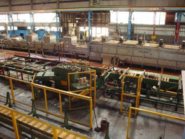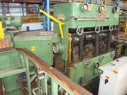 SPECIFICATIONS: MANUFACTURER: BRONX ENGINEERING CO. (U.K.) LTD. TYPE: 6 ROLL ROTARY TUBE STRAIGHTENER MODEL No.: MODEL 6CR7-BWS DIRECTION: LEFT TO RIGHT WITH LOADING AND DISCHARGE TABLES IN FRONT CAPACITY (COPPER & BRASS): MAXIMUM TUBE DIAMETER PER MANUFACTURER'S SPECS: 7" (178mm) MAXIMUM TUBE DIAMETER AS USED: 8" (203mm) MINIMUM DIAMETER SOFT. Cu.: 3/4" (19mm) MINIMUM DIAMETER HALF HARD: 1 3/8" (35mm) MAXIMUM TUBE LENGTH: 20 FT. (6.1m) - DETERMINED BY TABLE LENGTH - CAN BE EASILY LENGTHENED STRAIGHTENING SPEED: 0-50 FPM (0-15m/min.) ROLL TYPE: PARABOLIC (CONCAVE) CENTER DIAMETER: 9" (228mm) END DIAMETER: 10" (254mm) ROLL FACE: 14" (355mm) No. OF ROLLS: 6 (ALL DRIVEN) MOTORS: QUANTITY: 2 EACH MOTOR DRIVES 3 ROLLS SIZE: 12 HP, 720 RPM, 415 VOLT, 3 PH., 50 HZ DRIVE: RELIANCE MINITRON S-2 SERIES, SCR THYRISTOR VARIABLE SPEED PARAFIN FEED: MOTORIZED ROLL ADJUSTMENT: MANUAL PRESSURE INDICATORS: STATIMETERS FITTED TO THREE TOP ROLLS LUBRICATION: GREASE EQUIPPED WITH INCISE MARKER TO LABEL EACH TUBE BY IMPRINT. TUBES LEAVE THE DISCHARGE RACK OF THE STRAIGHTENER AND ARE GRAVITY FED TO THE ENTRY SIDE OF THE INCISING MARKER. INCISING ROLLS: 7" (178mm) DIA. x 4" (100mm) FACE ENTRY AND EXIT TABLES: 20 FT. (6.1m) **PRICE QUOTED AS IS WHERE IS SUBJECT TO PRIOR SALE** **ALL SPECIFICATIONS ARE SUBJECT TO VERIFICATION BY PURCHASER** |