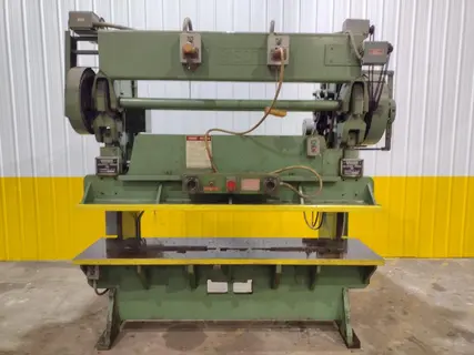 CAPACITY ........... 35 TON BED & RAM .......... 24" X 96" BOLSTER ............ 1.75" THICK RAM ................ 2" THICK BETWEEN HOUSINGS ... 78" THROAT ............. 8" OPEN HEIGHT ........ 14.25" MODIFIED AIR CLUTCH CONTROLS PALM BUTTONS |