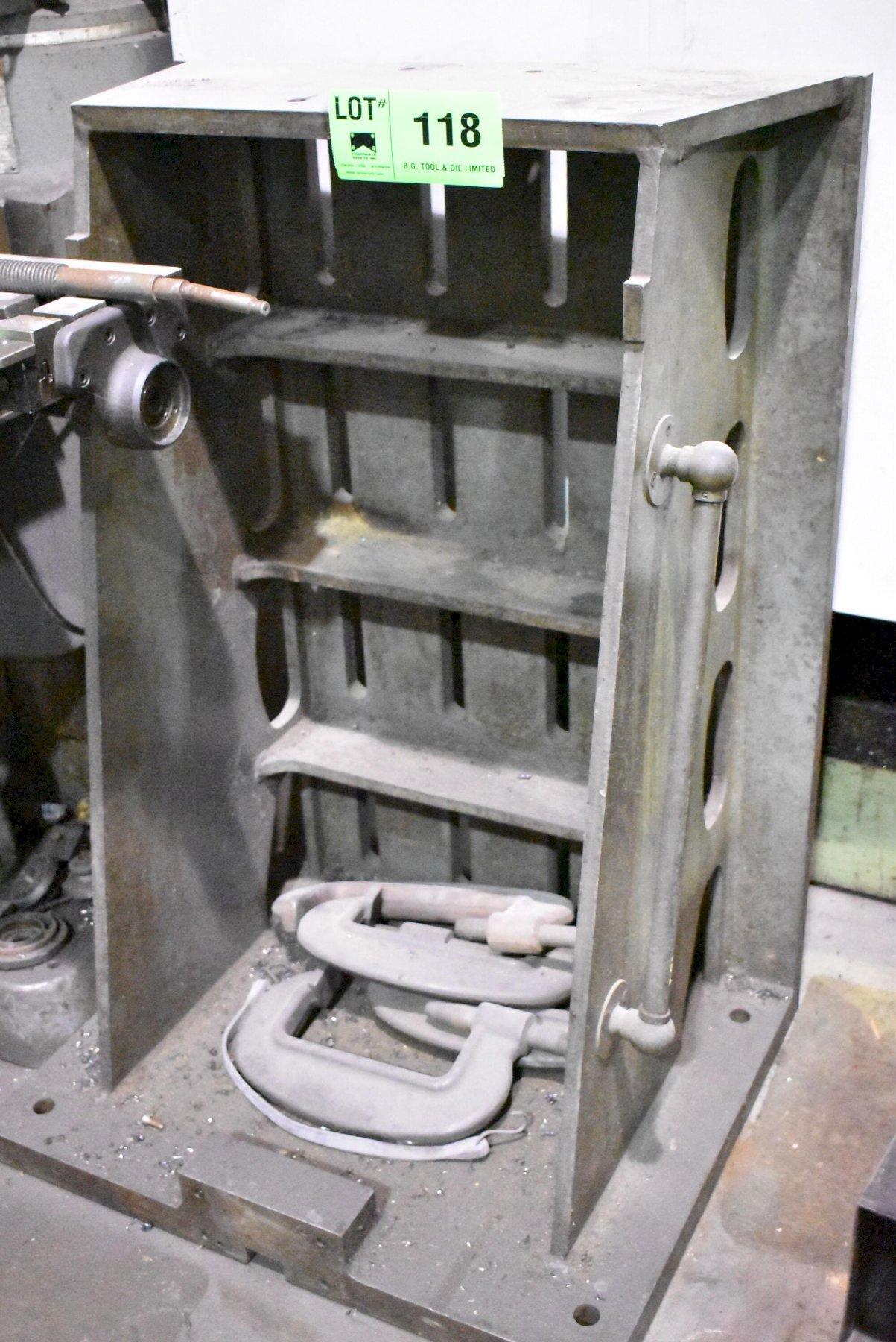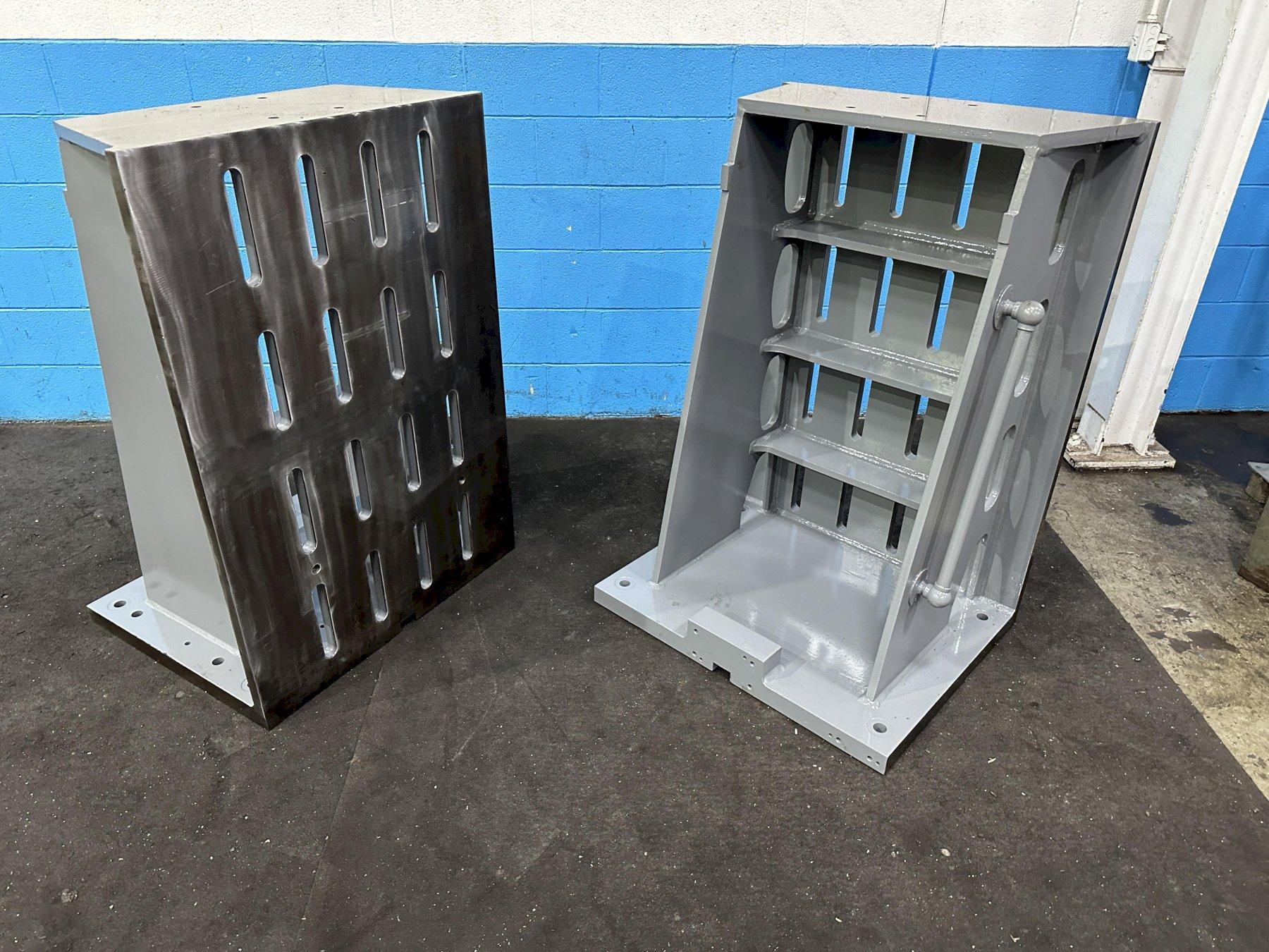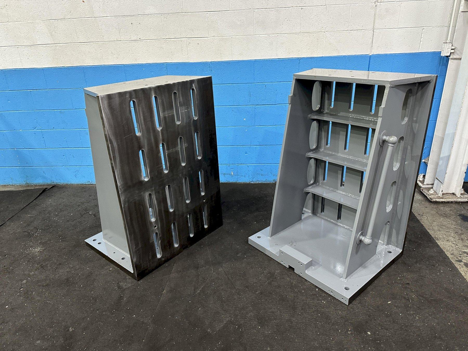 NUMBER OF PLATES .... 2 HEIGHT OF PLATE ..................... 47-3/4" WIDTH OF PLATE ...................... 33" DEPTH OF PLATE (BOTTOM) ............. 27" THICKNESS OF TOP PLATE .............. 1-1/4" NUMBER OF T SLOTS ................... 16 SLOTS CENTERS ....................... 1-1/4" X 8" SLOT CENTER ......................... 6" CAST IRON CONSTRUCTIONS ............. YES |