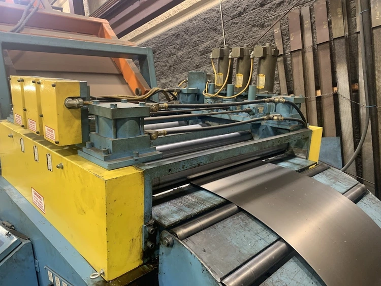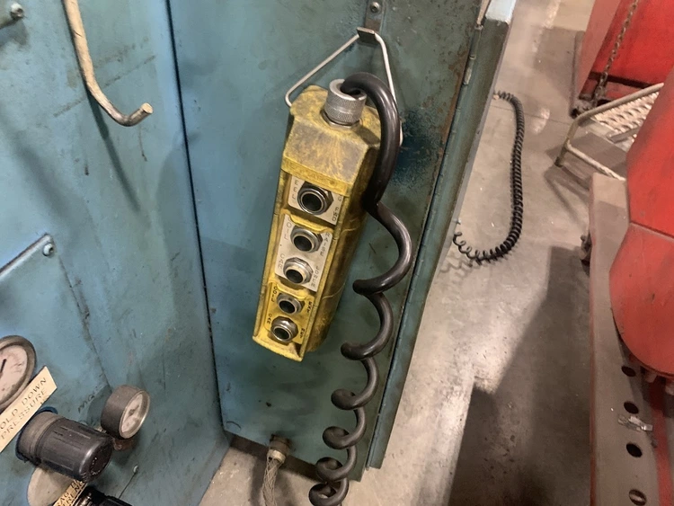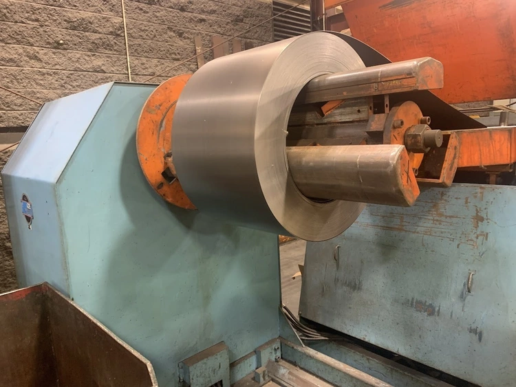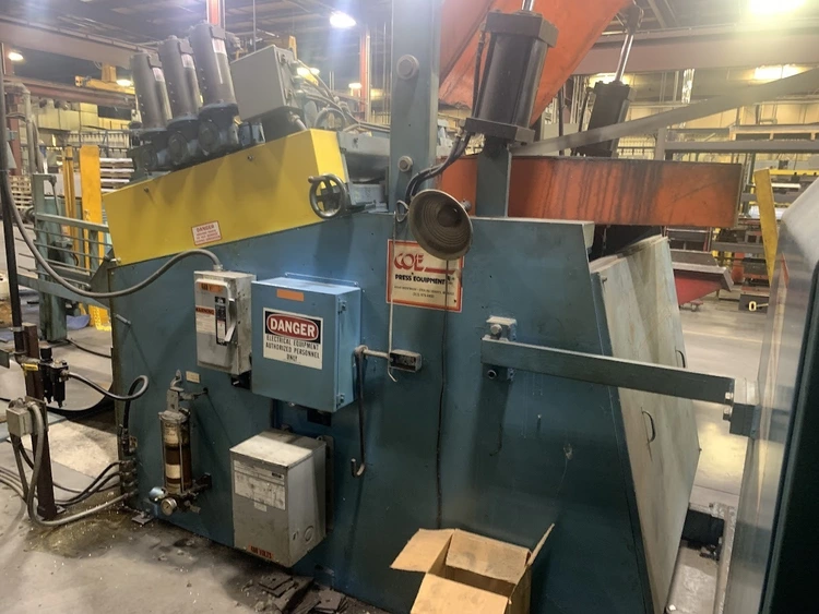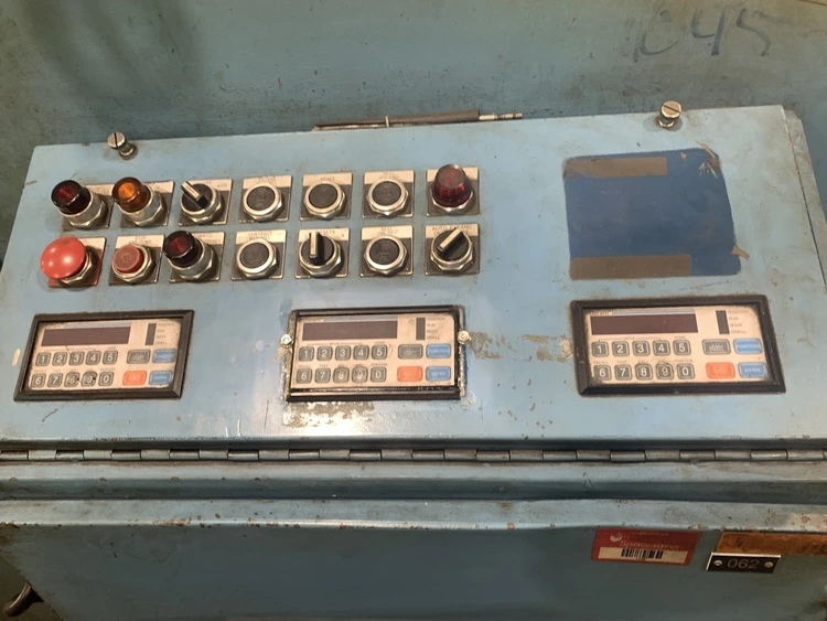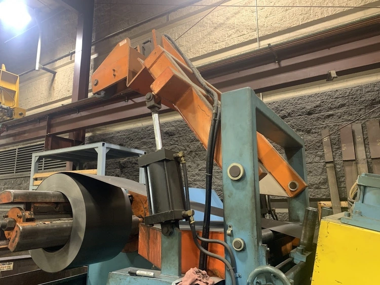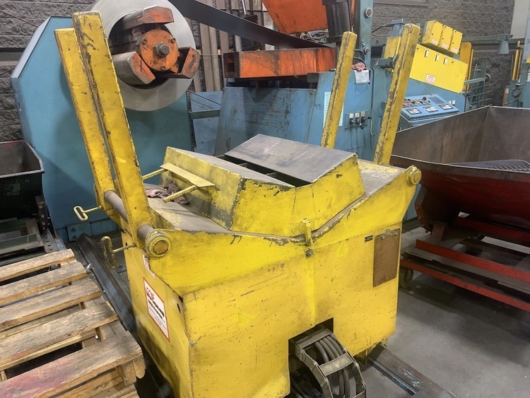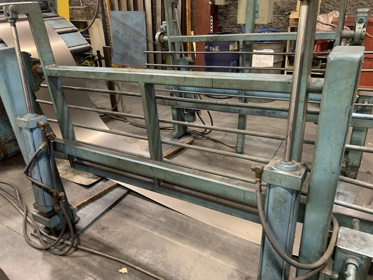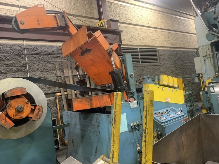 MODEL CRP-PO-15042 SN 10198-4 15,000 LB CAPACITY 3 LEAF MANDREL 42" MAX COIL WIDTH 60" MAX COIL O.D. 19-24" MANDREL EXPANSION HYDRAULIC EXPANSION AIR DRAG BRAKE HYDRAULIC THREADING DRIVE COIL CAR PENDANT FOR JOGGING LEFT TO RIGHT FEED DIRECTION 55" PASSLINE,STRAIGHTENER MODEL CPPS-PO-350-42 SN 10198-3 .063" AT 42" WIDE .090" AT 36" WIDE .187" AT 18" WIDE 7 ROLL 3.5" DIAMETER ROLLS BREAKER ROLLS HOLD DOWN ARM AIR ENTRY AND EXIT PINCH ROLLS ENTRANCE EDGE GUIDES PEELER TABLE JOGGING PENDANT LEFT TO RIGHT FEED DIRECTION,SERVO FEEDER MODEL CPRF-442 SN 10198-1 42" WIDE .063" AT 42" WIDE 350 FT PER MIN 4" ROLLS PILOT RELEASE SERVO DRIVE INDRAMAT CLM 0-999.99 FEED LENGHTS PENDANT FOR JOGGING 6" MOTORIZED ADJUSTMENT OF PASSLINE HEIGHT 55" PASSLINE HEIGHT,DIMENSIONS UNCOILER 112" X 64" X 86" T 6500 LBS COIL CAR W RAIL 125" X 64" X 62"T 4500LBS COIL LOOP PHOTO EYE 60" X 24" X 74"T 500 LBS STRAIGHTENER 154" X 84" X 107"T 10,000 LBS SERVO FEEDER 76" X 80" X 96"T 7000 LBS SERVO CONTOL 48" X 26" X 53"T 700 LBS LIFT GATES 8' X 32" X 65"T 1500 LBS FOB: Monclova Ohio |