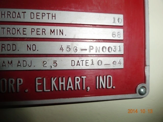 STROKE 3" SHUT HEIGHT (OVER BOLSTER)11 1/2" RAM ADJ. 2 1/2" SPEED 90-120 SPM RAM AREA 9"LR X 11.81" FB BED AREA 28"LR X 18" FB MOTOR 7 1/2 HP OAD 7' L X 6' W X 102" T APPROX WEIGHT 8,200 LBS,EQUIPPED WITH: FLYWHEEL DESIGN AIR CLUTCH & BRAKE KNOCK OUT SLOTS V/S MOTOR & CONTROLS FLYWHEEL DESIGN TEMPORARY SPECIFICATION SUBJECT TO REVISIONS.,PHYSICAL INSPECTION TO VERIFY SPECIFICATIONS IS RECOMMENDED.,LOCATION: COLUMBIA, TN,CALL FOR PRICING |