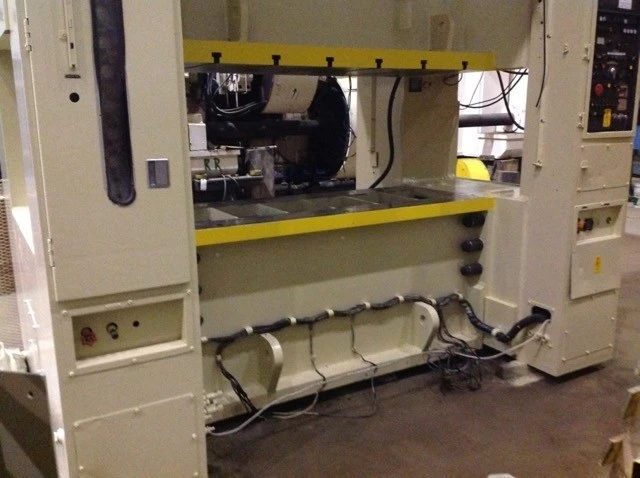 Specifications: Model: E2T-200N Serial Number: 10019 Capacity: 220 Ton Stroke: 15" Die Height: 17.72" Slide Adjustment: 5.91" Bed Area: 78.74" L-R x 31.5" F-B Speed: 15-30 SPM Windows: 44" Wide Equipped With: Air Clutch & Brake Air Counterbalances Air Cushion 6.57" Thick Plate Front Mounted Control Panel Floor Standing Without Cushions. |