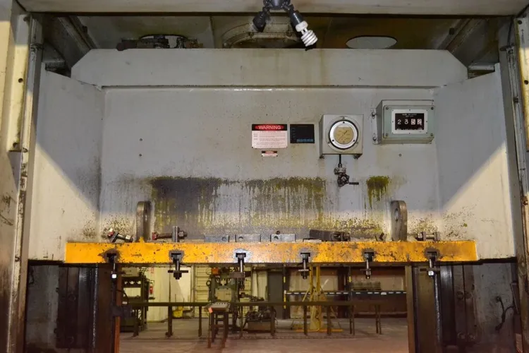 Specifications: Model: E2T-200N Serial Number: 10017 Capacity: 220 Ton Stroke: 15" Die Height: 17.72" Slide Adjustment: 5.91" Bed Area: 78.74" L-R x 31.5" F-B Speed: 15-30 SPM Windows: 44" Wide Equipped With: Air Clutch & Brake Air Counterbalances Air Cushion 6.57" Thick Plate Front Mounted Control Panel Floor Standing Without Cushions. |