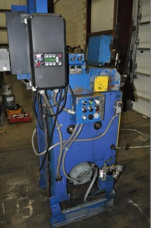 SERIAL #: 80712 8" MAXIMUM WIDTH .010" - .018" THICKNESS CAPACITY 7 ROLL STRAIGHTENER ENTRY PINCH ROLLS DANCER ARM WOODS ETRAC VARIABLE SPEED FREQUENCY DRIVE APPROXIMATE DIMENSIONS: 55" LR x 38" FB x 48" TALL GOOD CONDITION |