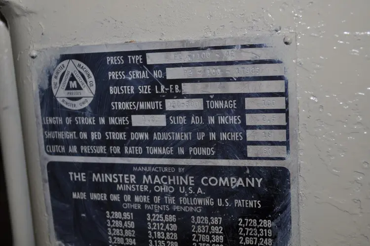 MINSTER 100 TON P2-42 PRESS, STOCK# 13609J,MODEL #: P2-100-42