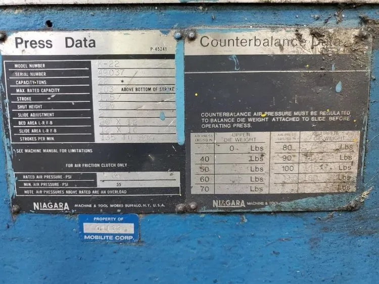 NIAGARA 22 TON OBI FLYWHEEL PRESS, STOCK# 14234J