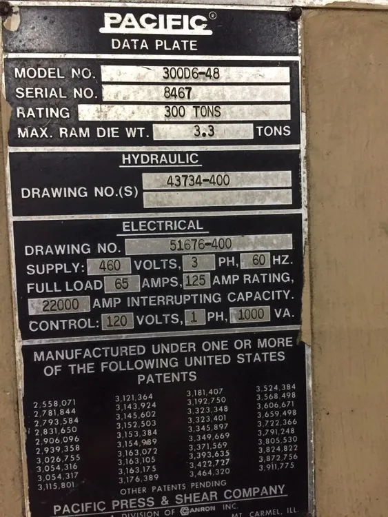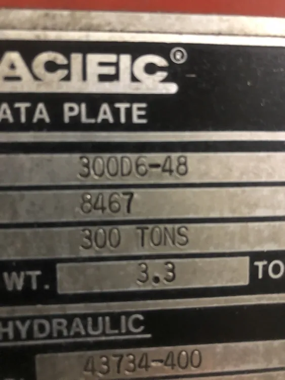 300 TON PACIFIC HYDRAULIC PRESS, STOCK 13901J