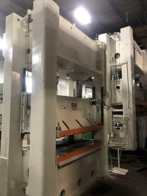 S/N: 8467 Age: 1979 Model D6-48 Open Ht: 32" Stroke: 24" Shut Ht: 8" Bed Size: 72" x 48" Rapid advance: 308 ipm Fast press: 114 ipm Normal press: 38 ipm Fast return: 187 ipm Normal return: 67" Cushion Flush floor Operator controls 50 HP hydraulic system w / intercooler Elec: 230/460v 3ph 60cy |
