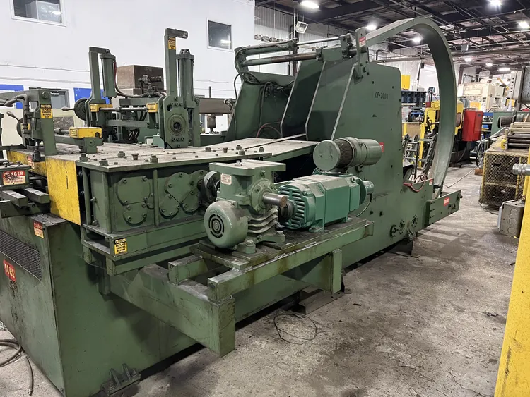 MDL# CSF3-30-4J S/N# 26378 MAX WIDTH 30" MAX THICKNESS .150" MAX COIL WEIGHT 4,000 LBS MAX COIL OD 60" 7 STRAIGHTENING ROLLS 4 PINCH ROLLS CRADLE FEEDER/STRAIGHTENER |