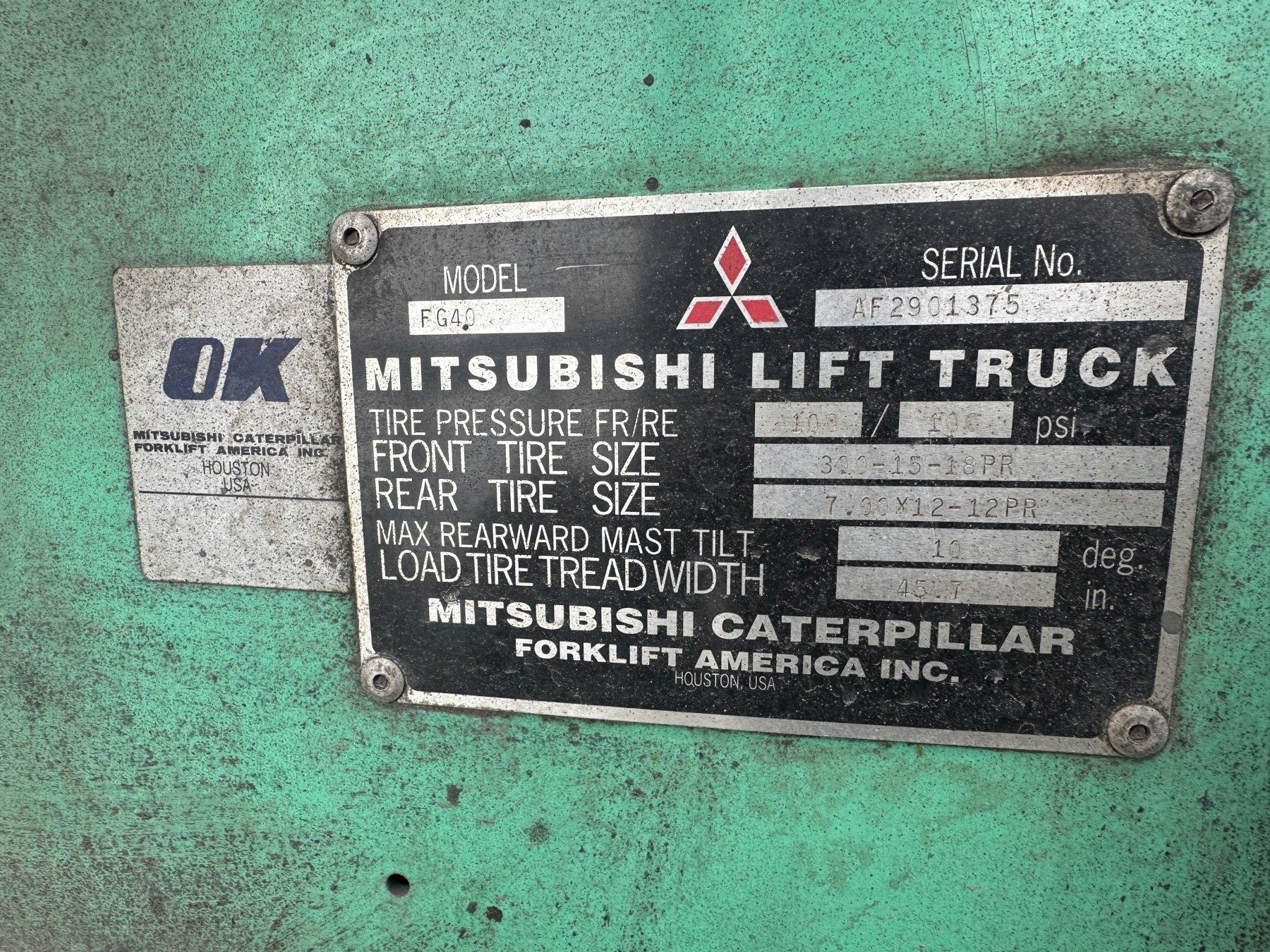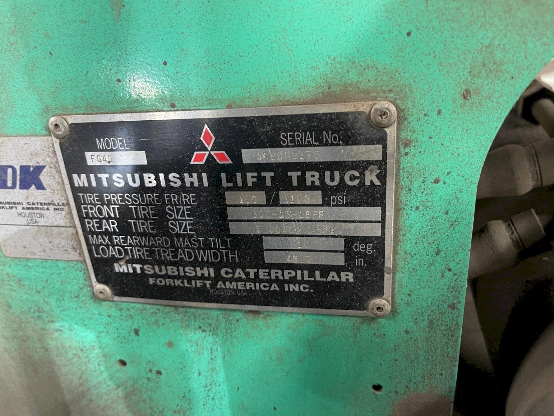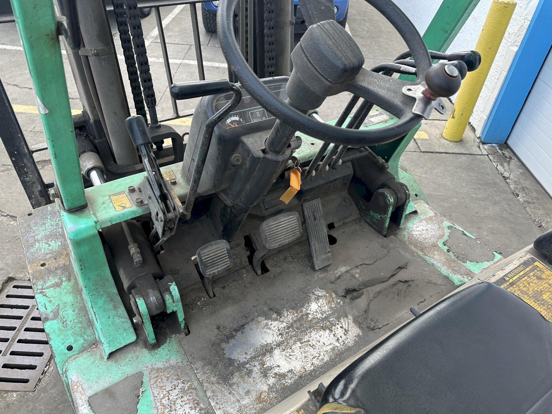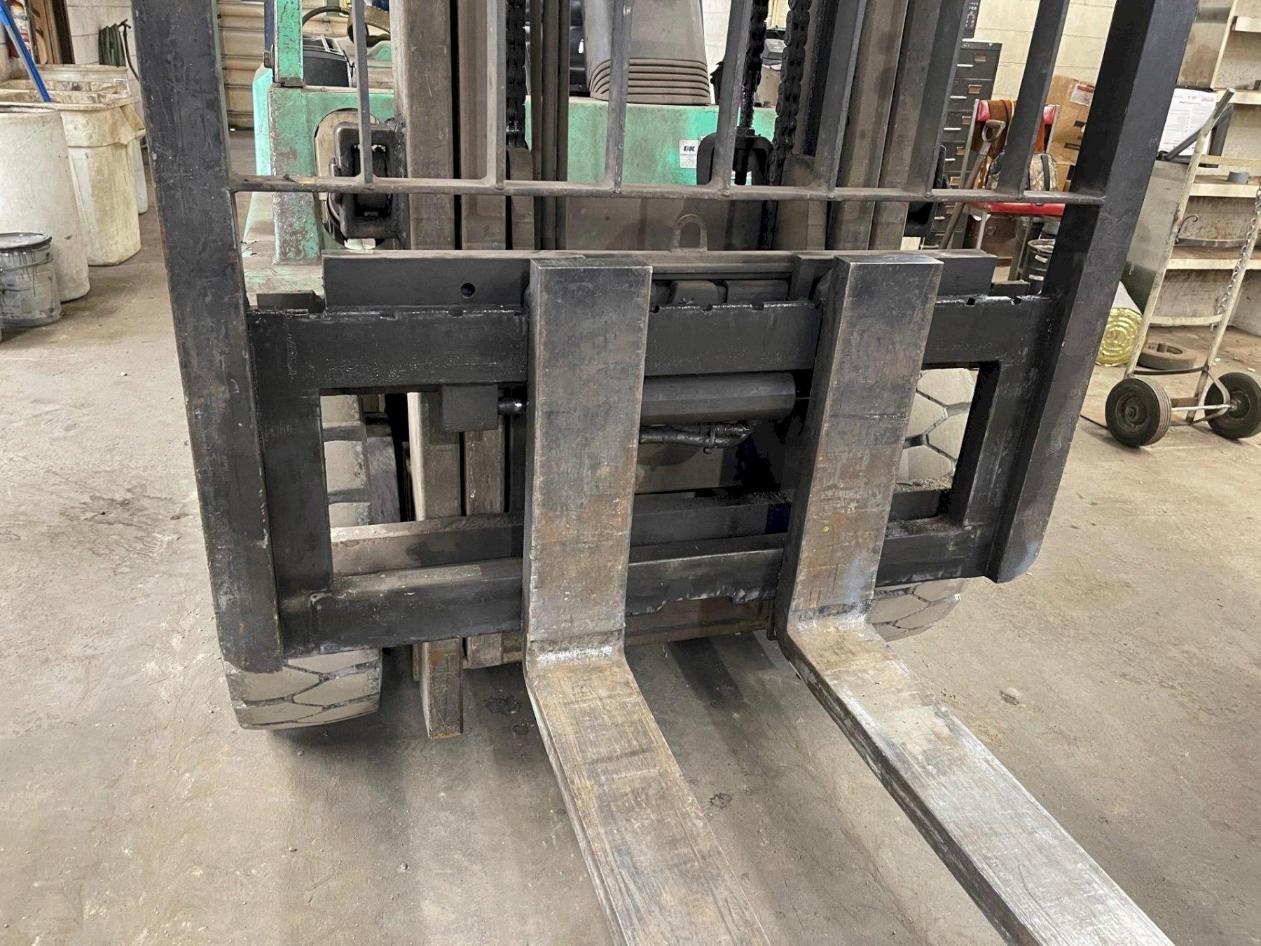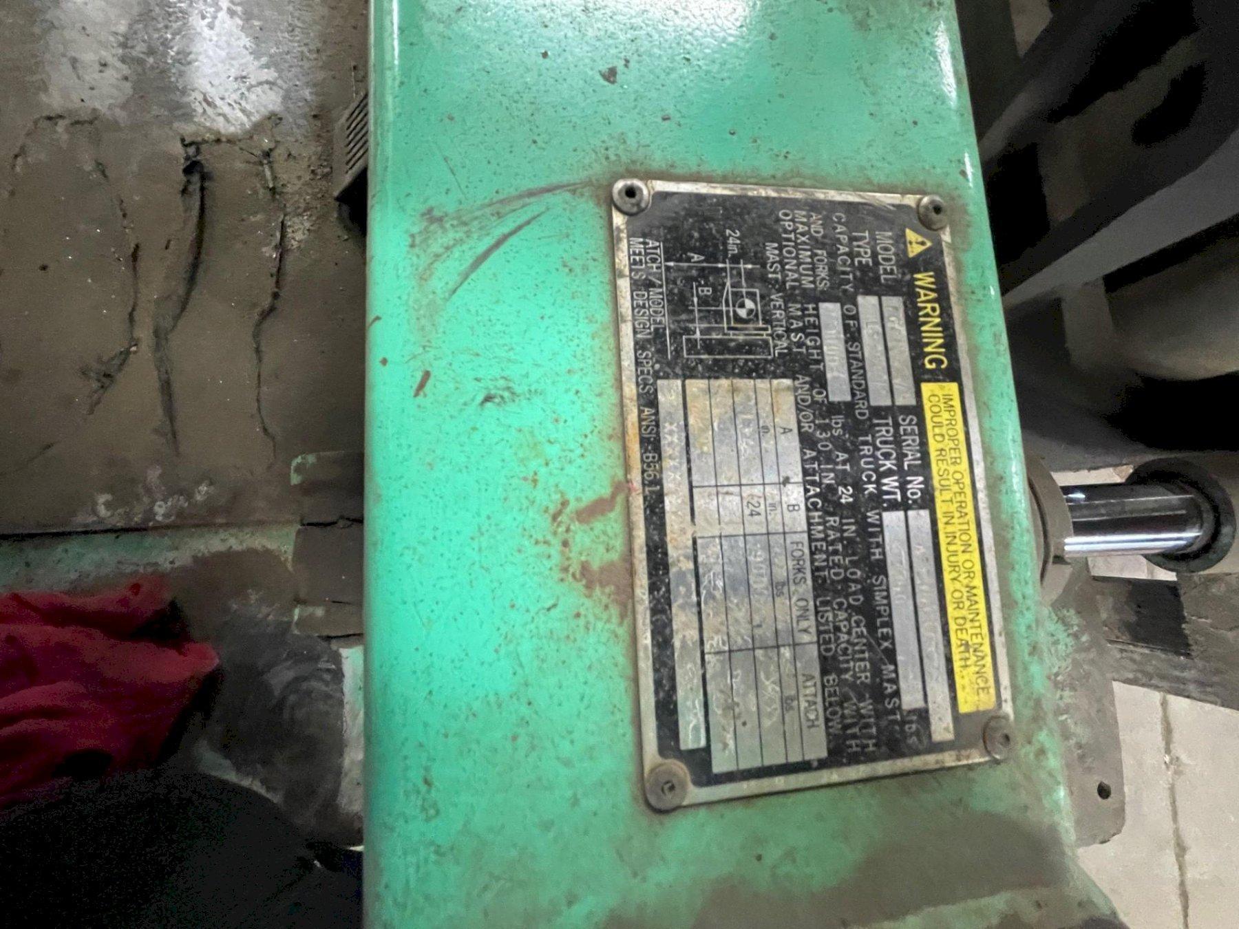 SERIAL ..................... AF2901375 MODEL ...................... FGC40K YEAR NEW ................... 1998 CAPACITY ................... 9000 LB MAST HEIGHT RAISED ......... 130" MAST HEIGHT LOWERED ........ 84" MAST FREE FLOAT HEIGHT ..... 54" MAST TILT .................. 5 DEGREE SIDE SHIFT ................. YES FRONT TIRES ................ 22" X 6" X 16" REAR TIRES ................. 19" X 7" X 12" AUTOMATIC TRANSMISSION ..... FORWARD & REVERSE FUEL ....................... LP GAS CYLINDERS .................. 6 FORK LENGTH ................ " TILT STEERING WHEEL ........ YES CARGO LIGHTS ............... YES WIDTH OF LIFT .............. 54" LENGTH WITHOUT FORKS ....... 102" HOURS ...................... 6500 |
