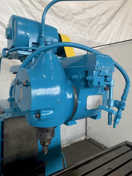 MODEL.................................: NO. 38 TABLE SIZE............................: 14" X 64" TRAVELS: LONGITUDINAL..........................: 34" CROSS.................................: 14" KNEE VERTICAL.........................: 22-1/4" RAM TRAVEL............................: 29" SPINDLE SPEEDS........................: (12) 50- 2000 RPM TAPER.................................: 50 FEED RATES............................: (18) 3/8 - 24 UNIVERSAL TABLE.......................: YES 45 DEGREE VAN NORMAN SWIVEL VICE................: YES VAN NORMAN 4 TH AXIS INDEXER..........: YES |