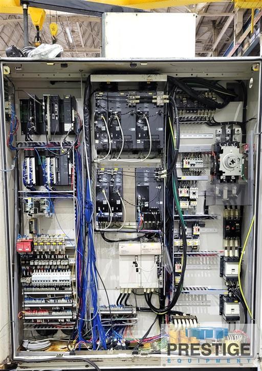 Spindle Diameter 4.33" Taper In Spindle #50 Vertical Head Travel, Y-Axis 49.2" Table Cross Travel, X-Axis 63" Spindle Travel, Z-Axis 19.7" Saddle Travel, W-Axis 44.5" Table Size, Built-In Rotary 49.2" x 44.1" Table Indexing 0.001 Degree Table Load Capacity 8800 LBS Max. Spindle Speed 5-3000 RPM Spindle Motor 20 HP Equipped With: Tosnuc 999 CNC Control 49.2 x 44.1" Full B-Axis Rotary Table 38-Station Automatic Tool Changer Renishaw RMP-60 Probe Through Spindle Coolant Chip and Splash Enclosure Steel Sliding Way Covers Chiller Chip Conveyor |