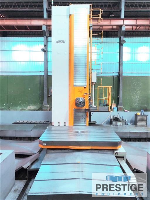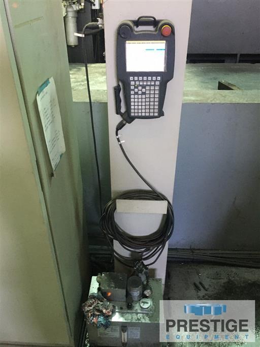 Spindle Diameter 5.31" Spindle Taper #50 BT Vertical Travel of Head, Y-Axis 157.48" Column Travel, X-Axis 244.09" Spindle Travel, Z-Axis 27.55" Ram Travel, W-Axis 13.77" Total Axial Travel, Ram & Spindle 41.33" Spindle Speeds: Spindle Motor 60 HP / 50 HP Machine Footprint 530" x 370" x 298" Rotary Table: Table Size 78.74" x 98.42" Table Infeed 78.74" Table Indexing, B-Axis .001 degrees Table Capacity 66,000 lbs Equipped With: FANUC 31i-MB (10.4” LCD)CNC Control Portable Screen Control (iPendant) Linear Scales Coolant Through Spindle Spindle Chiller Chip Conveyer |