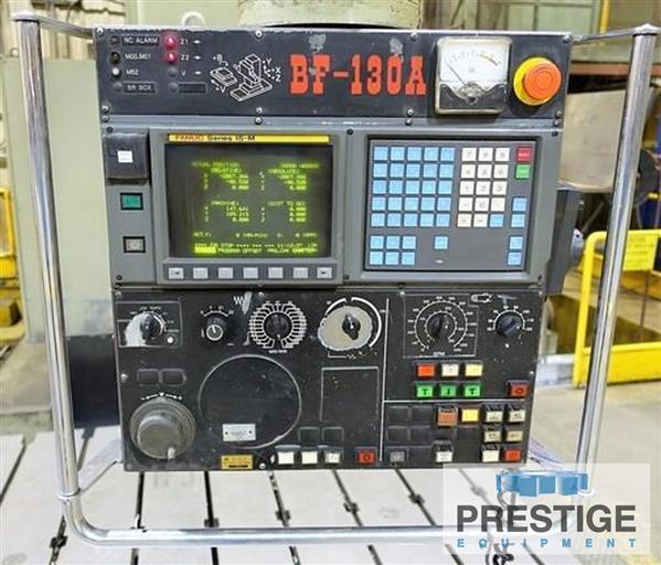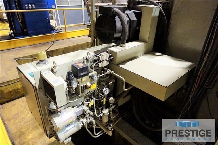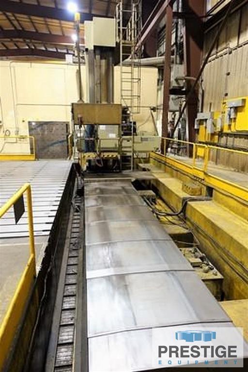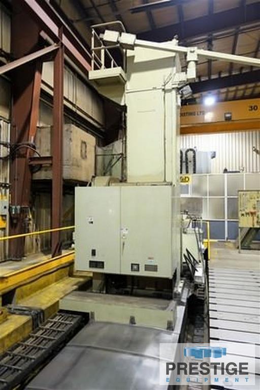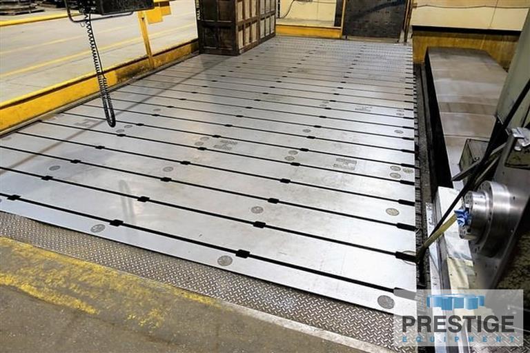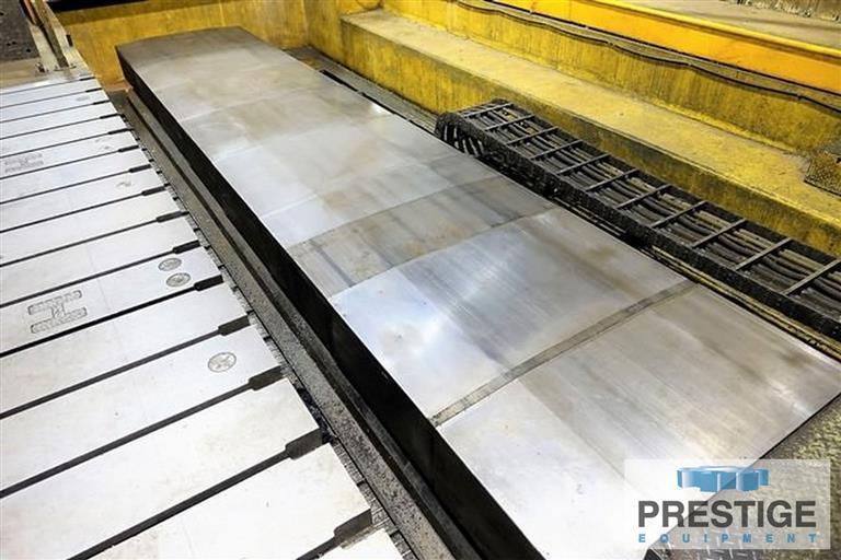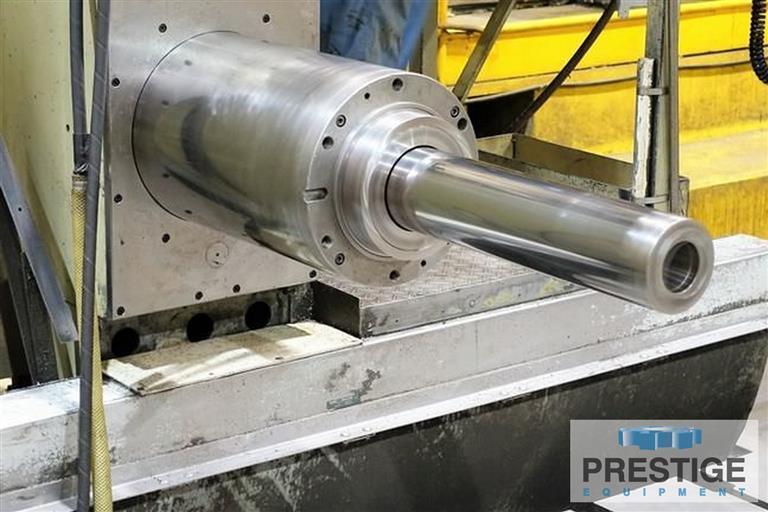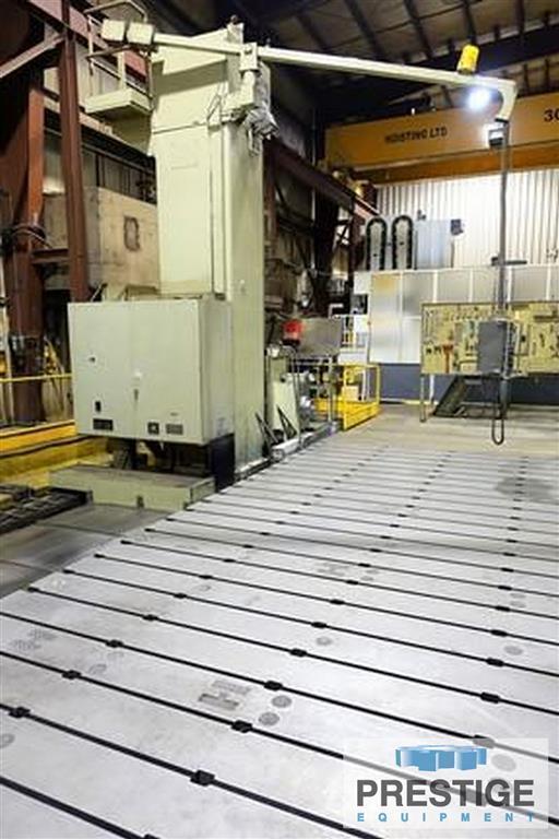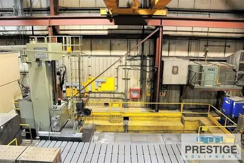 Spindle Diameter 5.12" Quill Diameter 13.38" Milling Sleeve Diameter 8.8" Vertical Headstock Travel, Y-Axis 118.11" Column Travel, X-Axis 295.27" Boring Spindle Travel, Z-Axis 39.37" Quill Travel, Z-2 Axis 17.7" Total Axial Travel, Spindle & Quill 39.37" Spindle Speed Ranges 2 Spindle Speeds, Infinitely Variable 5-800 RPM Spindle Taper #50 Feeds, Variable 0.04 - 157 IPM Rapid Traverse 157 IPM Spindle Motor 30 HP / 40 HP Approx. Machine Dimensions 496" x 175" x 289" Machine Only Weight 69,500 Lbs Equipped With: Fanuc 15M CNC Control 180" x 156" T-Slotted Floor Plate (25) Tool Holders Any Associated Spare Parts Hardened Ways Telescoping Way Covers on Runway Ball Screws & Independent Drives 40 HP Spindle Drive |