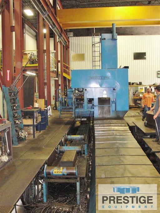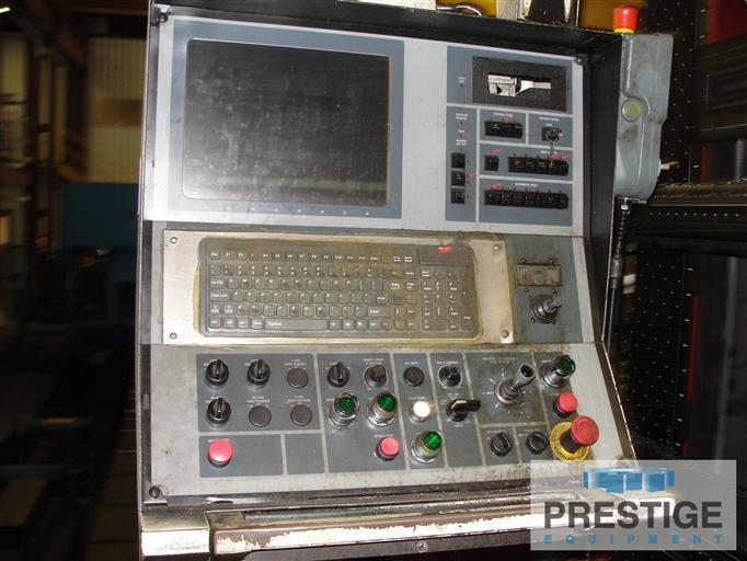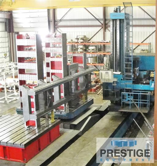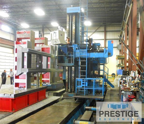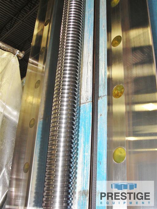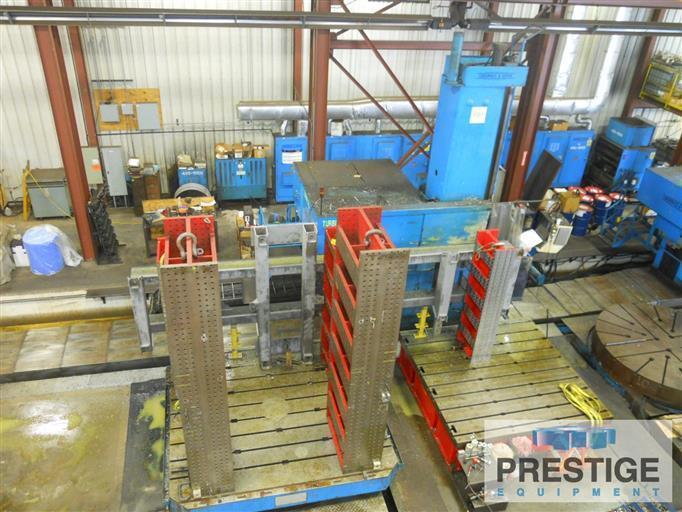 Spindle Diameter 6" Spindle Taper No.50 ANSI Vertical Headstock Travel, Y-Axis 156" Column Travel, X-Axis 396" Spindle Travel, Z-Axis 48.03" Spindle Drive Motor 50 HP Spindle Speed Range, Inf.Variable 12-2500 RPM Traverse Rate, X-Axis 400 IPM Traverse Rate, Y-Axis 450 IPM Feed Rates, X, Y & Z Axes 150 IPM Axis Thrust, Z-Axis 15,000 Lbs Axis Thrust, X, Y & W Axes 10,000 Lbs Axis Feedback, X & Y Axes Inductosyn Scales Axis Feedback, Z-Axis Resolver NOBLE & LUND CNC B-AXIS INFEEDING ROTARY TABLE, Age 1994: Table Size 137" x 137" Table Infeed, W-Axis 47" Table Weight Capacity 60 Tons Rotary Motion Infinitely Variable Feed Ranges Infinitely Variable Table Linear Motion 157.48 IPM Table Rotary Motion to .5 RPM Table Rotation, B-Axis Contouring 360,000 Positions Table Weight 60 Tons Equipped With: Giddings & Lewis 8000B CNC Control 80 Tool Automatic Tool Changer Independent AC Electric Servo Feed Drives Infinitly Variable Spindle Speeds Chiller Unit for Control of Headstock Lube Oil Temp. Adjustable Pendant Mounted CRT Power Draw Bar, Collet Type Chip Conveyor and Elevator Operators Platform Coolant Through Spindle Heavy Duty Meehanite Casting Construction Non-Metallic Way Liners Double Motor Pinion Drive on X-Axis Rack Automatic Lubrication of All Machine Ways |