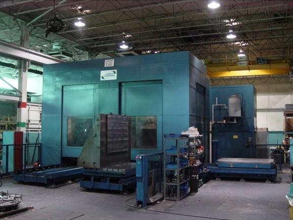 Spindle Diameter 5.9" Taper In Spindle #50 Vertical Head Travel, Y 118.11" Table Cross Travel, X 118.11" Column Infeed Travel, W 78.74" Ram Travel, Z........................ 31.49" 31.49" Spindle Travel, Z-1 27.55" Ram Cross Section 12.79" x 12.79" Facing Head Travel, U 5.9" Right Angle Heads 5 Degrees Rapids 393 IPM Pallet Size (3) 63" x 90.55" Spindle Speeds 12-2000 RPM Pallet Capacity 26,400 lbs. Equipped With: Siemens 880M CNC Control (3) 63" x 90.55" Pallets "B Axis" Shuttle System 165-Station Automatic Tool Changer 3-Station Automatic Head Changer 2-Right Angle Heads 1-Facing Head w/ 2 #50 Taper Offset Pockets Thru Spindle Coolant, 435 PSI Ball Screws With Independent Drives Full Enclosure, Chip Conveyor & Coolant System 87 HP DC Spindle Drive |