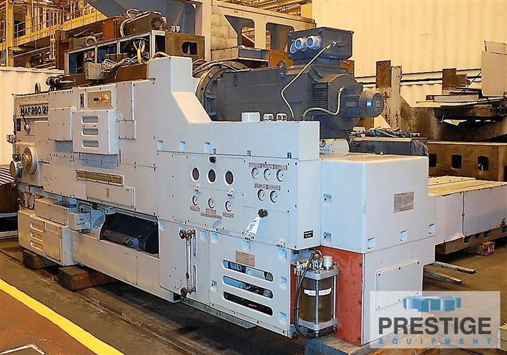 Spindle Diameter 8.27" Column Travel, X-Axis 492.12" Headstock Vertical Travel, Y-Axis 236.22" Main Spindle Horiz Travel, Z-Axis 51.18" Ramstock, Travel, W-Axis 39.37" Combined Travel Z & W Axis 90.45" Auxillary Spindle, C-Axis 19.68" Ramstock, Travel, W-Axis 39.37" Combined Travel C & W Axis 59.05" Main Spindle Speeds, Z-Axis 3-600 RPM Auxillary Spindle Speeds, C-Axis 75-2800 RPM High Speed Shaft For Attachments 7-2500 RPM Front Plate Dimensions 31.69" x 42.32" Rapid Traverse X,Y,Z Axes 196.85 IPM Feed Rate 0.04-157.48 IPM HEADSTOCK:Main Spindle, Z-Axis: Boring Spindle Diameter 8.26" Milling Spindle Diameter 12.20" Spindle Taper #60 ANSI Spindle Travel, Z-Axis 51.18" Speeds 3-600 RPM Spindle Motor 100 HP/ 120 HP Auxillary Spindle, C-Axis: Spindle Diameter 11.02" Spindle Taper #60 ANSI Spindle Travel 19.68" Spindle Speeds 75-2800 RPM Maximum Thrust 6,600 Lbs Spindle Motor 20 HP Coolant Thru Spindle Yes DESCRIPTION OF AXES: Column Travel X-Axis Spindle Vertical Y-Axis Main Spindle In & Out Z-Axis Auxilliary Spindle In & Out C-Axis Surfacing Slide U-Axis Headstock In & Out W-Axis Equipped With: Siemens 840D Solution Line CNC Control (Retrofit 2010) 2800 RPM Auxillary Spindle Through Spindle Coolant Long Reach Milling Attachment: #50 Taper, 1200 RPM Universal Milling Head, Model UHM-40, 42" Reach Facing Head, Surfacing Slide, Model SHM-2000 U-Axis Full Length Chip Conveyor New Spare Spindle & Bearings Available 2-Ton Jib Crane For Loading Attachments 100 HP / 120 HP Main Spindle Motor NOTE: Machine Was Built New in 1980's and Installed In USA Government Facility. Partially Rebuilt and Retrofit with New Siemens 840D CNC Controls in 2010. Inspect In Our Philadelphia PA Warehouse |