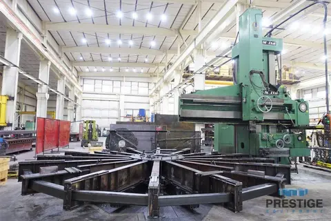 Table Diameter 118.11" Maximum Turning Diameter 275.59" Maximum Turning Diameter To Center 196.85" Maximum Turning Height 112.20" Maximum Height Under Cross Rail 124.21" Column Travel 70.86" Vertical Travel of Ram Head 59.05" Horizontal Travel of Ram Head 100.39 Ram Swivel +/- 30 Degrees Side Head Stroke 24" Vertical Travel of Cross Rail 78.74" Table Speeds 16 Table Speed Range .3 to 40 RPM Feeds, Ram & Side Head 16 Feed Range, Ram & Side Head .0003-0.59 IPM Maximum Torque 58,000 ft lbs Table Weight Capacity 132,000 Lbs Floor Space L-R x F-B 400" x 300" Maximum Height In Operation 300" Weight 152,500 Lbs Equipped With: 118.11" T-Slotted Table With 4-Top Jaws Full Pendant Control Vertical Ram Side Head 60 HP Main Motor |