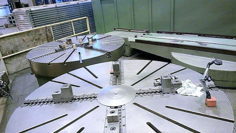 Pallet Diameter 80.3" Maximum Swing 86.6" Maximum Turning Height 70.86" Horizontal Travel of Ram Head 51.96 Vertical Travel of Ram Head 59.05" Table Speeds 2.5-280 RPM Table Weight Capacity 26,400 Lbs. Feeds .004 - 236 IPM Main Motor 100 HP Spindle Motor 20 HP Spindle Speeds 45 - 1350 RPM Floor Space 393" x 381" Height 267" Approximate Weight 94,772 Lbs. Equipped With: Siemens Sinumerik 840C CNC Control (2015 Retrofit) Vertical Ram with Live Spindle Pallet Changer (3-Pallets) 16-Station Automatic Tool Changer C-Axis Table NOTE: View Video On Our Website www.prestigeequipment.com |