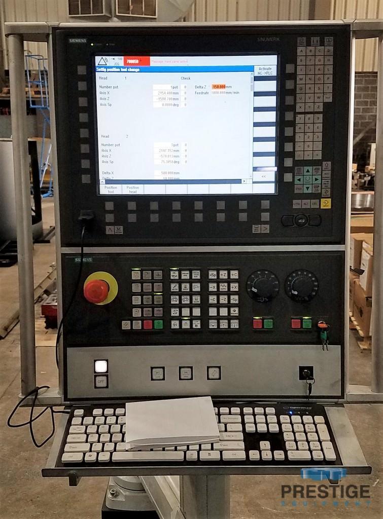 Table Diameter 90.55" Maximum Swing Diameter 102.36" Maximum Turning Height 78.74" Vertical Ram Stroke 47.24 Ram Section 12.59" x 12.59" Cross Rail Stroke 47.24" Maximum Table Capacity 55,000 lbs Table Indexing .001 Degrees Table Speeds, Max 300 RPM Milling Spindle Speeds 4,000 RPM Milling Spindle Motor 67 HP Milling Spindle Taper CAT 50 Machine Weight 132,000 lbs Equipped With: Siemens 840D sl. CNC Control C-Axis Table Ram with Live Milling Spindle Through Spindle Coolant 10-Station Automatic Attachment Changer CNC Swivel Head CNC Right Angle Head |