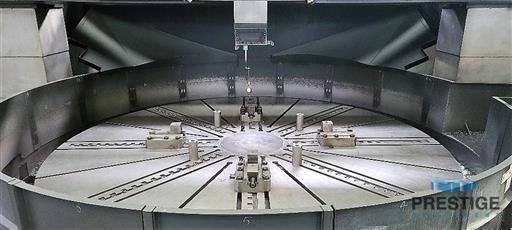 Table Diameter 177.16" Ram Dimensions 13.77" x 13.77" Maximum Cutting Diameter 196.85" Maximum Cutting Height 98.42" Table Speeds, 2-Step 1 - 50 RPM Table Weight Capacity 88,000 Lbs X-Axis Travel 161.41" Z-Axis Travel 59.05" W-Axis Travel 78.74" C-Axis .001 Deg. Taper in Ram BT-50 Rapid Traverse, X/Z-Axes 236.22 IPM Rapid Traverse, W-Axis 19.68 IPM Cutting Feed Rate, X/Z-Axes .039 - 78.74 IPM Cutting Feed Rate, C-Axis 0 - 180 Deg/Min Milling Spindle Speed 1500 RPM Milling Spindle Motor 40 HP Table Motor 194 HP Approximate Machine Footprint 453" x 296" Approximate Machine Height 386" Approximate Machine Weight 308,000 Lbs Equipped With: Siemens 840D CNC Control C-Axis Table Milling Spindle 12-Station Automatic Tool Changer 177.16" 4-Jaw Face Plate Type Chuck |
