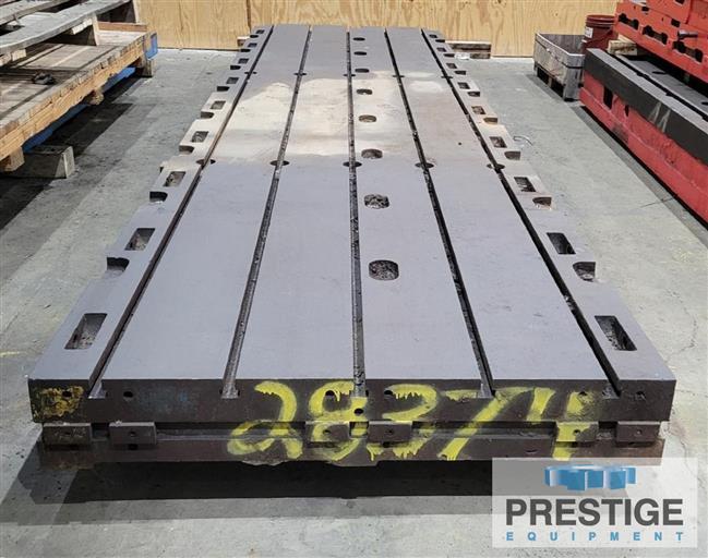 Length 218.5" Width 60" Thickness 10" Number of T-Slots 5 Distance Between T-Slots 12" T-Slot Size 1" x 1.75" Type of Material Cast Shipping Weight Per Plate 20,500 Lbs Equipped With: Cast Iron Construction NOTES: Inspect In Our Philadelphia PA Warehouse |