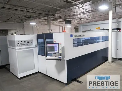 Laser Output 6000 Watts X-Axis Travel 120" Y-Axis Travel 60" Z-Axis Travel 4.5" Max. Material Thickness (Mild Steel)... 1" 1" Max. Material Thickness (Stainless) .75" Max. Material Thickness (Aluminum) .5" Equipped With: Trumpf Touch Screen Graphic CNC Control TruFlow 6000 Watt Laser Resonator Nozzle Changer Option Automatic Pallet Shuttle System Lift-Master Compact Material Load/Unload Automation Dust Collector Chiller NOTE: Laser Installed New August 2020 Excellent Condition, Only 954 Beam On Hours Inspect In Plant Under Power  |
