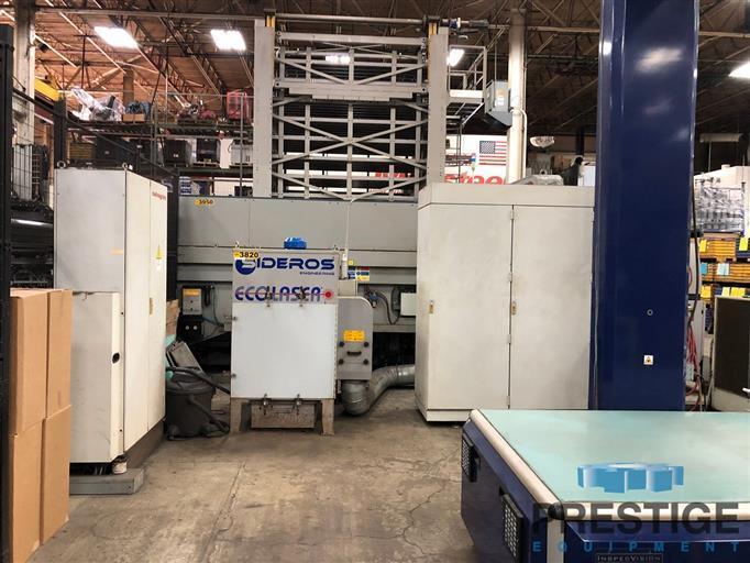 Maximum Laser Output 3000 Watts X-Axis Travel 120" Y-Axis Travel 60" Z-Axis Travel 5.9" Maximum Speed 4,200 IPM Positioning Tolerances +/- 0.002" Maximum Material Weight 1,100 Lbs. Equipped With: Salvagnini CNC Control Rofin DC030 3000 Watt Resonator Automatic Shuttle Table ADL Heavy Duty Load/Unload System with Skeleton Removal Tower with Loading Cart and Elevator for Loading/Unloading Tower Slag Conveyor with Hopper Chiller Dust Collector Loaded with Spare Parts NOTE: Inspect In Plant Under Power |