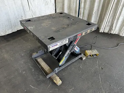 SERIAL .................... 313119228 MODEL ..................... 24S25 CAPACITY .................. 2500 LBS PLATFOR LENGTH ............ 36" PLATFORM WIDH ............. 36" LOWERED HEIGHT ............ 11" RAISED HEIGHT ............. 32" RAISING TIME .............. 12 SECONDS LOWERING TIME ............. 6 SECONDS NUMBER OF CYLINDERS ....... 1 PHASE ............1 VOLTAGE ... 110 DUAL FOOR PEDALS .. YES MOTOR ..................... 3/4 HORSEPOWER |