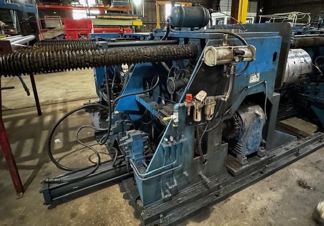 SERIAL.. RR-81104 YEAR ... 1981 Weight Capacity 10,000 lbs. Width 44" Drum Face (made up of 4 independent 10" wide drums) Drum Diameter 21.5" collapsed, 24" expanded Sliding Base with 18" travel Hydraulic expansion Air Clutch controls each drums ability to slip Hydraulic Push-off VOLTS .. 230/460 HP ..... 20 |