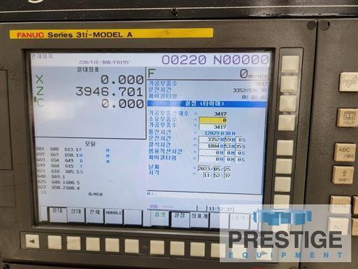 Swing Over Bed 37.40" Swing Over Carriage 24.80" Distance Between Centers 314.96" Spindle Bore 10" Maximum Spindle Speed (2-Ranges) 2-630 RPM Spindle Nose A2-11 Milling Speeds 4,000 RPM Milling Motor 9.3 HP Spindle Drive Motor 30 HP/35 HP Load Capacity Between Centers 13,200 Lbs. X-Axis Travel 21.06" Z-Axis Travel 308.85" Tailstock Quill Diameter 7.08" Tailstock Spindle Taper MT-6 Tailstock Quill Travel 9.84" Approximate Machine Weight 32,500 Lbs. Equipped With: Fanuc 31iA CNC Control 24" 3-Jaw Manual Chuck 12-Position Turret Live Milling C-Axis 10" Spindle Bore SMW Hydraulic Rest (15.74") Coolant System Tailstock Dual Chip Conveyors Tooling (4 Angular Milling Holders & Turning Holders) |