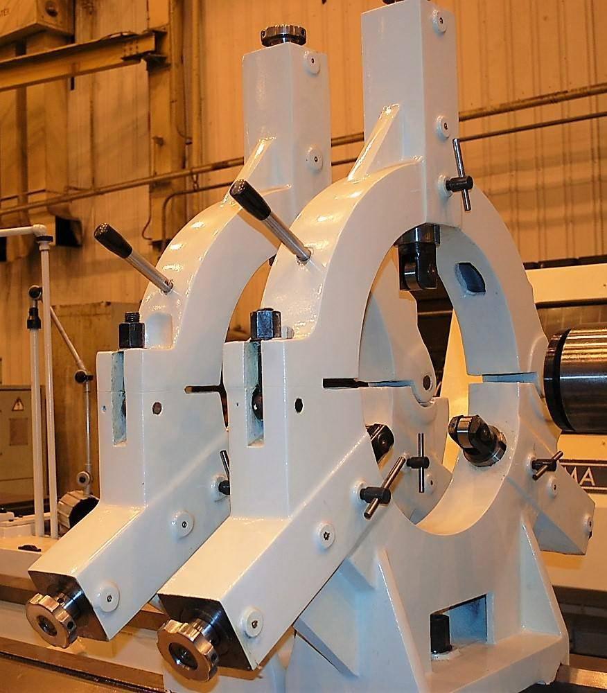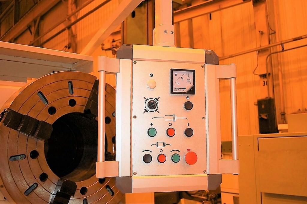 Maximum Swing Over Bedways 39.37" Maximum Swing Over Carriage 25.1" Distance Between Centers 236.12" Spindle Hole Diameter 14.17" Spindle Speeds (18) 6.3-315 RPM Weight Between Centers 13,200 lbs Crosslide Travel 20.47" Topslide Travel 11.81" Metric Thread Range (44) 1-120 MM Whitworth Thread Range (37) 30-1+1/8 TI Module Threads (46) .5-60 MM Tailstock Diameter 6.3" Tailstock Taper #80 Metric Tailstock Travel 11.81" Spindle Motor 29 HP (22KW) Bed Width 29.72" Machine Dimensions 365" x 74" x 75" Machine Weight 37,500 lbs Equipped With: Pendant Control (2) 31.49" 4-Jaw Chucks Mounted Front & Rear Mounted Front & Rear Chuck Guards 4-Way Tool Post Inch/Metric Threading Taper Turning Attachment (2) Large Roller Type Steady Rests: 1.96"-18.50" Follow Rest: 1.96" - 8.66" Dead Center Live Center Coolant System Work Light Rapid Traverse Motorized Tailstock Special Tools 30 HP Spindle Motor 440V/3Ph/60Hz NOTE: Brand New Machine 5-Months Delivery |