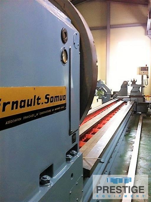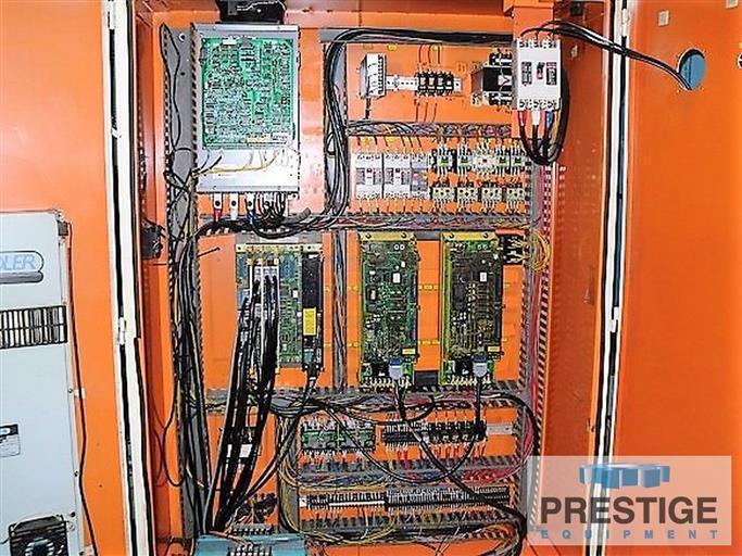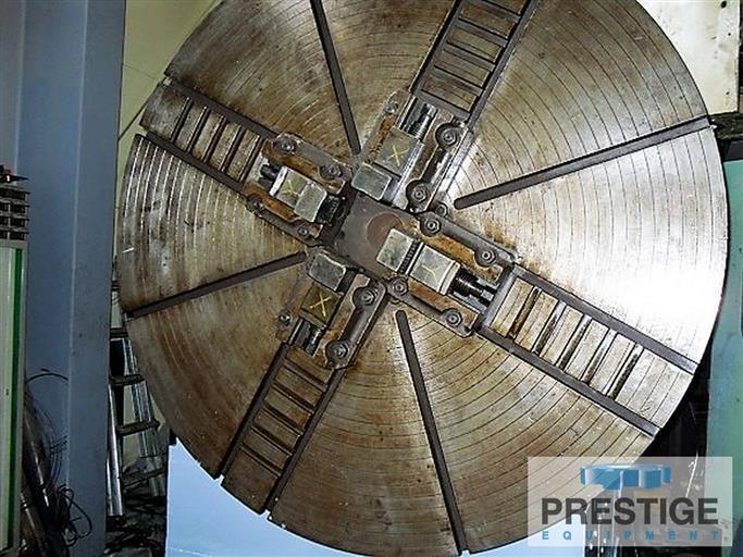 Maximum Swing over Bedways 72.04" Maximum Swing Over Cross Slide 60" Distance Between Centers 472.44" Diameter of Chuck....................... 62.99" 62.99" Spindle Speeds 300 RPM Quill Diameter 10" Maximum Weight Between Centers 33 Tons Main Motor 100 HP (75 KW) Equipped With: Fanuc 0-Mate M CNC Control (Retrofit in 2013) 62.99" 4-Jaw Chuck (2) Steady Rest - 24" & 36" Mitsubishi 2 Step Automatic Program Speed Change X-Axis Ball Screw Heat Treated 3-Way Bed |