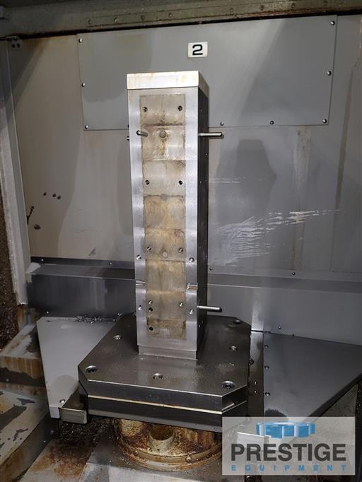 X-Axis Travel 22.05" Y-Axis Travel 22.05" Z-Axis Travel 27.17" Max. Workpiece Diameter x Height 24.8" x 36.22" Table Top To Spindle Centerline 3.15-25.20" Table Center To Spindle Nose 1.97-29.13" PALLETS Number Of Pallets 2 Pallet Size 15.75" x 15.75" Pallet Indexing 0.001 Degree, Full B-Axis SPINDLE: Spindle Speeds 100-15,000 RPM Spindle Motor 50 HP Spindle Taper CAT 40 Spindle Torque 184 FT/LBS TOOL CHANGER: Tool Capacity 60 ATC Max. Tool Dia. Adjacent Full/Empty 3.74"/6.69" Max. Tool Length 17.72" Max. Tool Weight 26 Lbs. FEEDRATES: Rapid Traverse Rate, XYZ Axes 2480 IPM Cutting Feed Rate XYZ Axes 0.04"-575 IPM DIMENSIONS & WEIGHTS: Floor Space Required 102.56" x 76.38" Machine Height 103.94" Approximate Weight 19,000 LBS Equipped With: Fanuc 31i-B CNC Control Dual 15.7" x 15.7" Pallets Full B-Axis Contouring 15,000 RPM Spindle 60-Station Automatic Tool Changer High Pressure Thru-Spindle Coolant Renishaw OMP60 Probe System Daikin Inverter LNS Turbo HB Chip Conveyor HOUR COUNT: Power On 39,130 Cutting Time 15,788 LOCATION: Under Power In Our Philadelphia Warehouse |